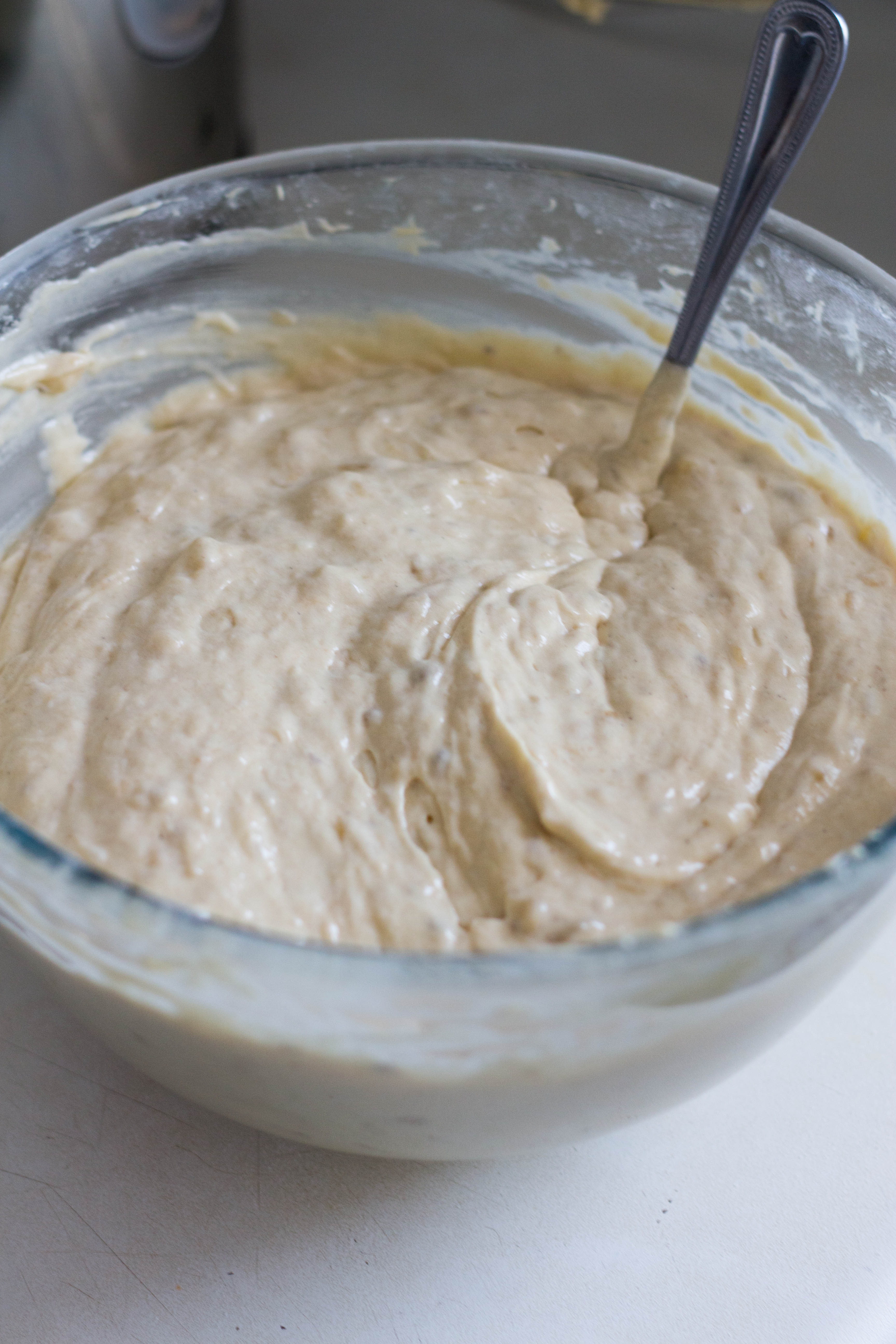 Mash the bananas, then stir in the vanilla bean paste and baking soda and set aside.