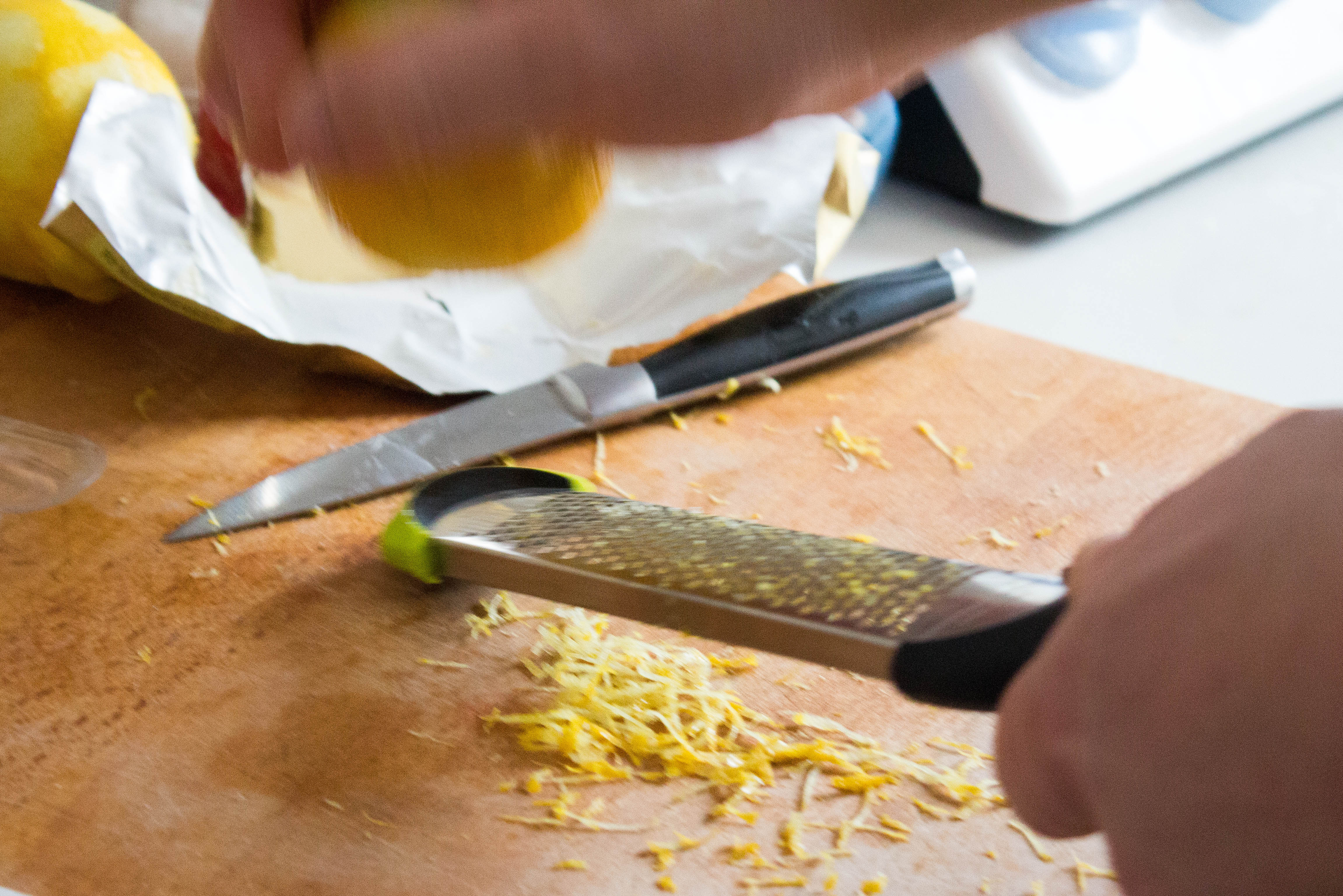 Place the biscuits into a food processor and blitz until you have a fine crumb. Add in the butter and lemon zest and blitz until the mixture comes together.