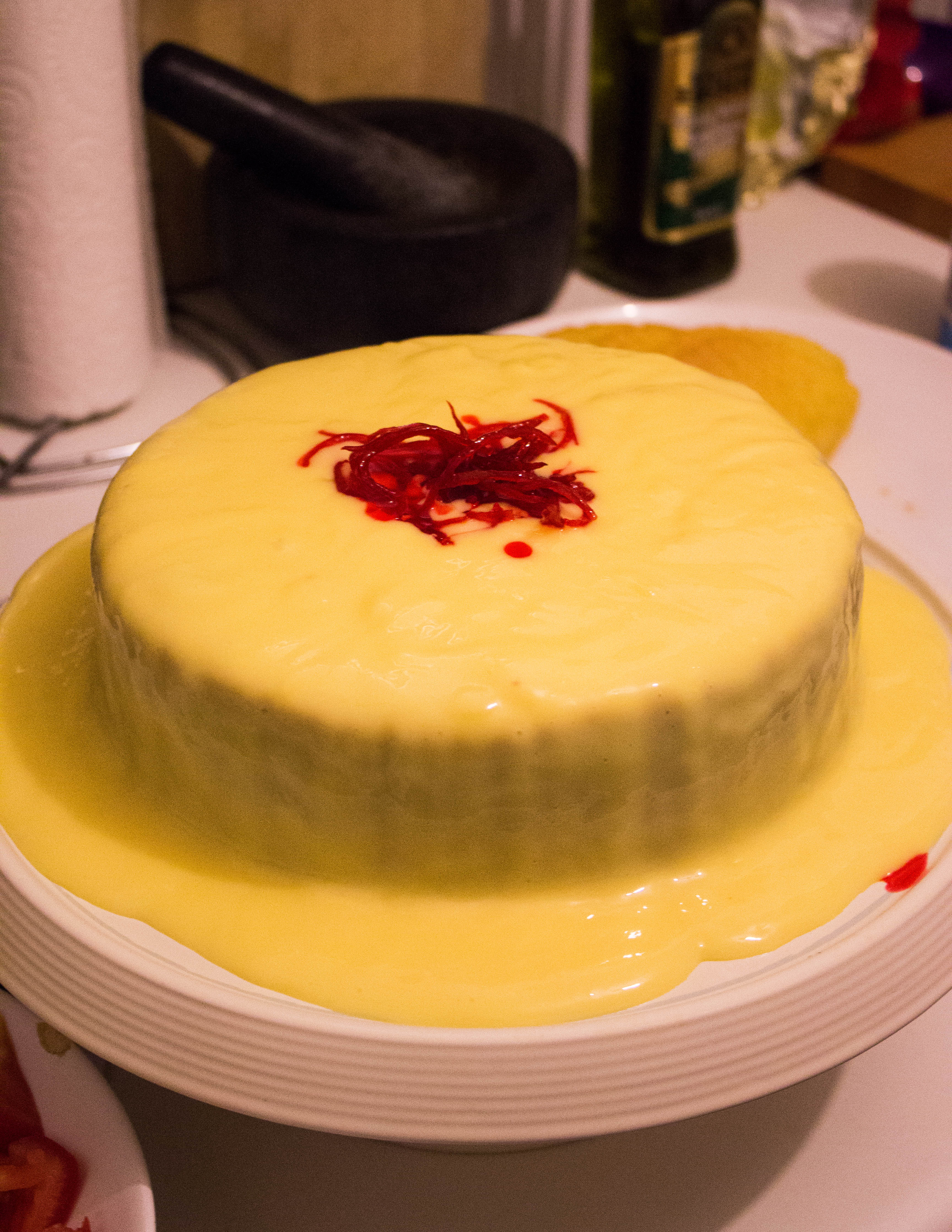 Once your cheesecake has cooled, slowly pour the lemon curd onto the centre of your cake, allowing the mixture to drip down the sides and encase your cake in a lemon curd ‘crust’.