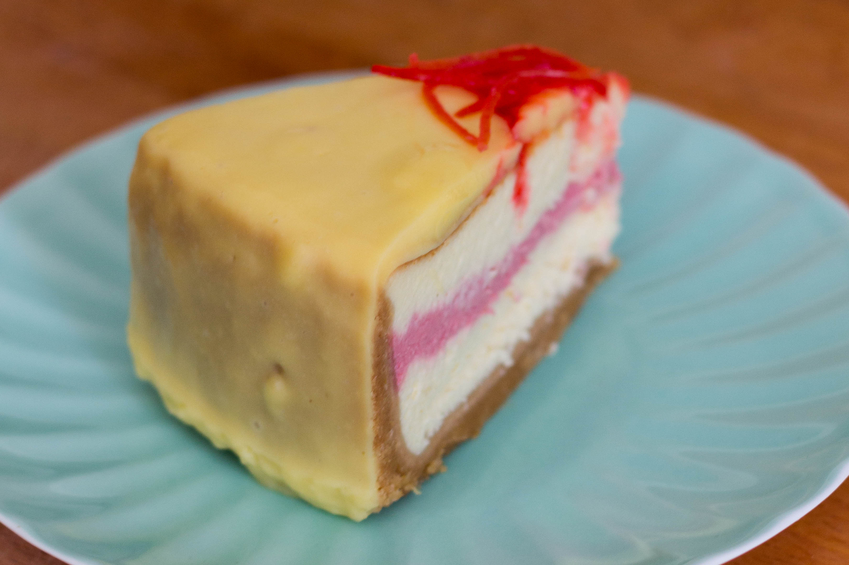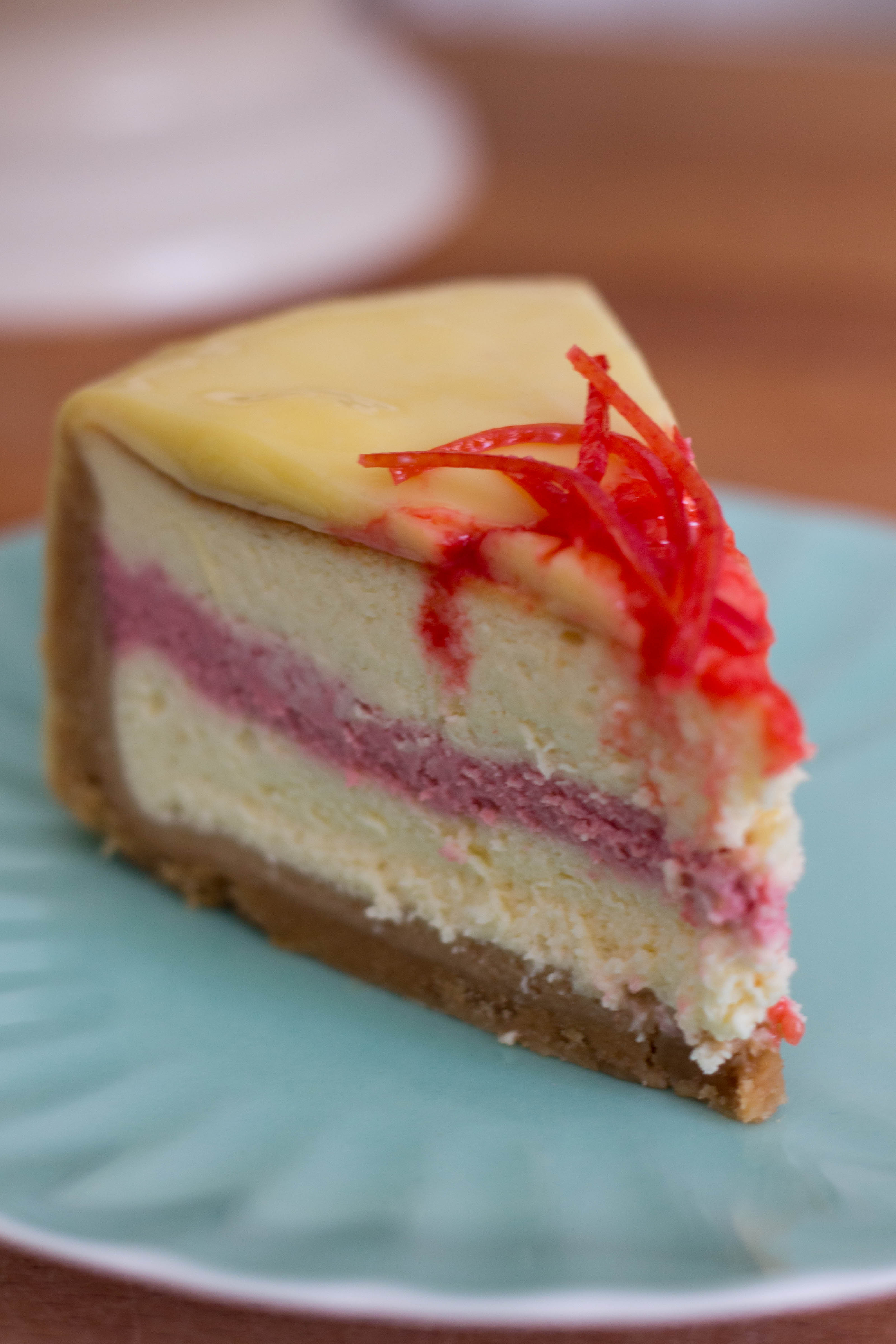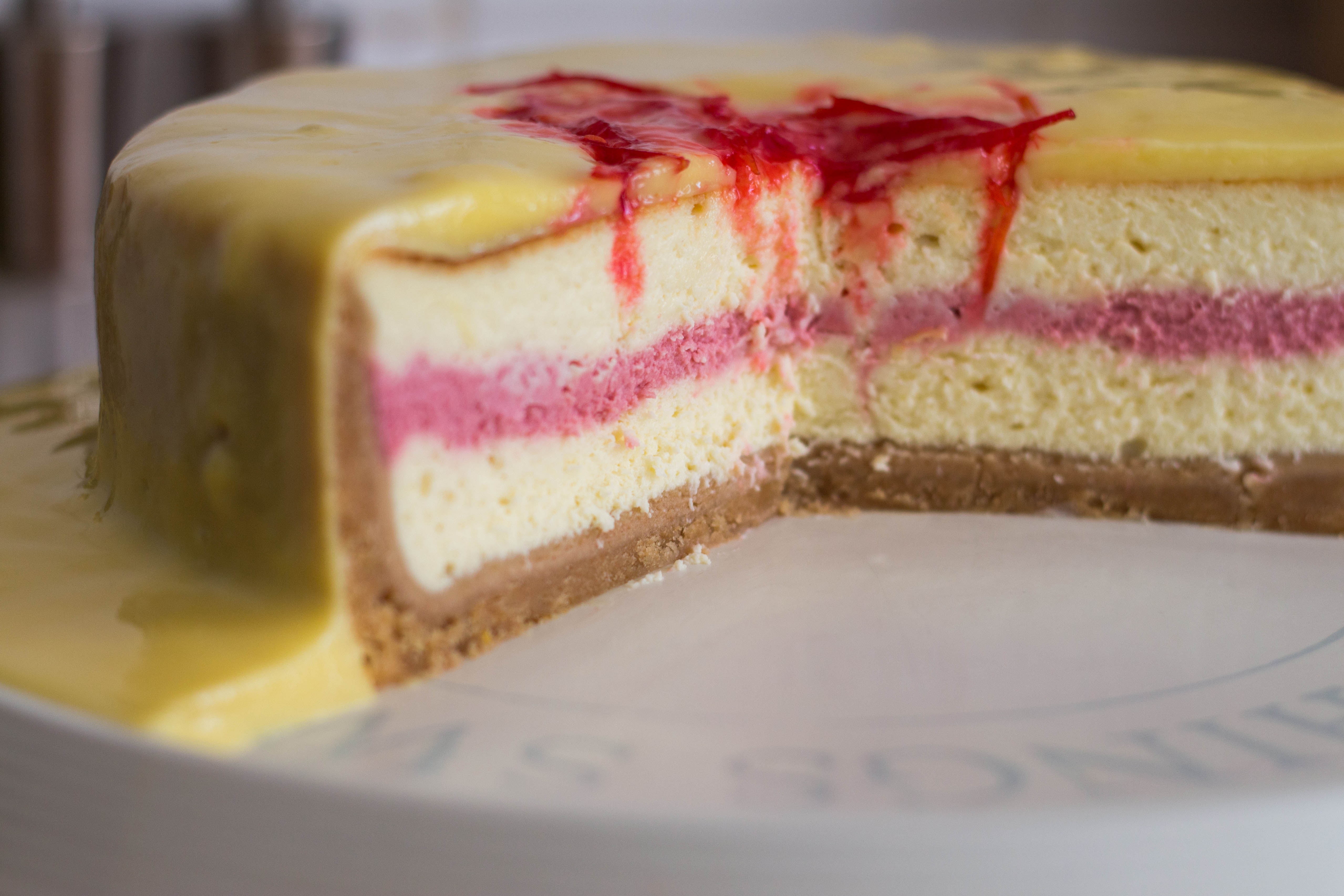 Lemon Curd Crusted Raspberry Burst Cheesecake