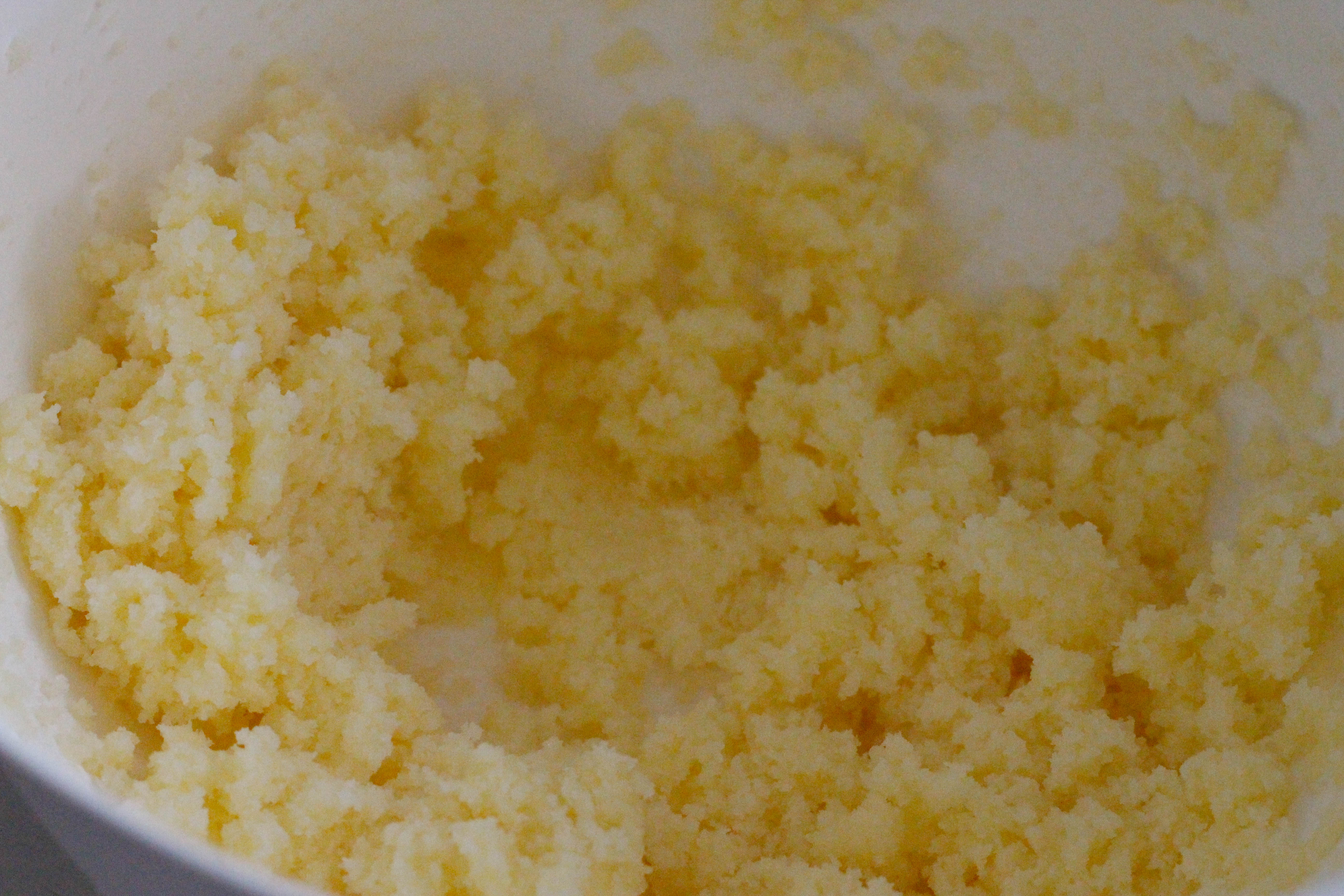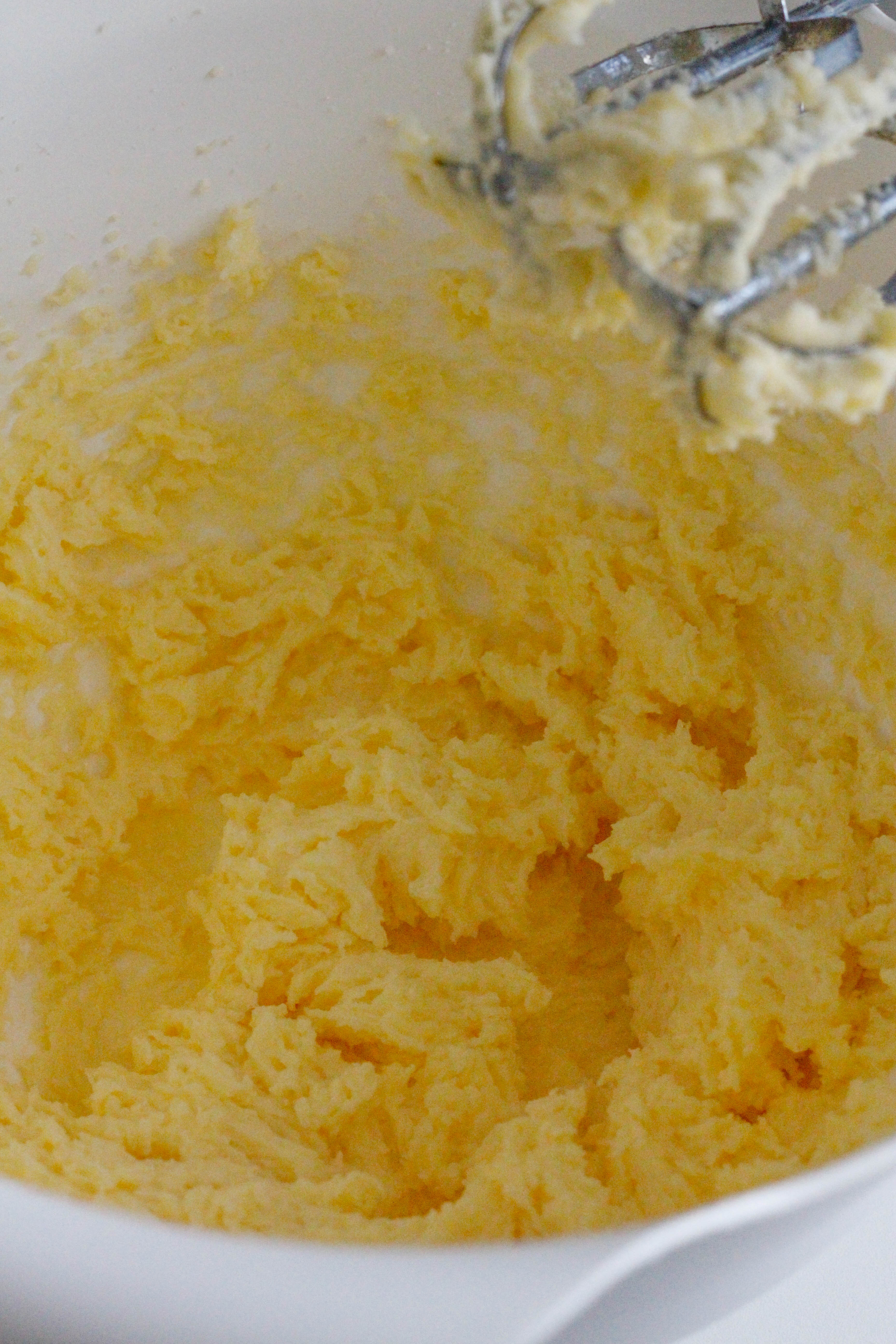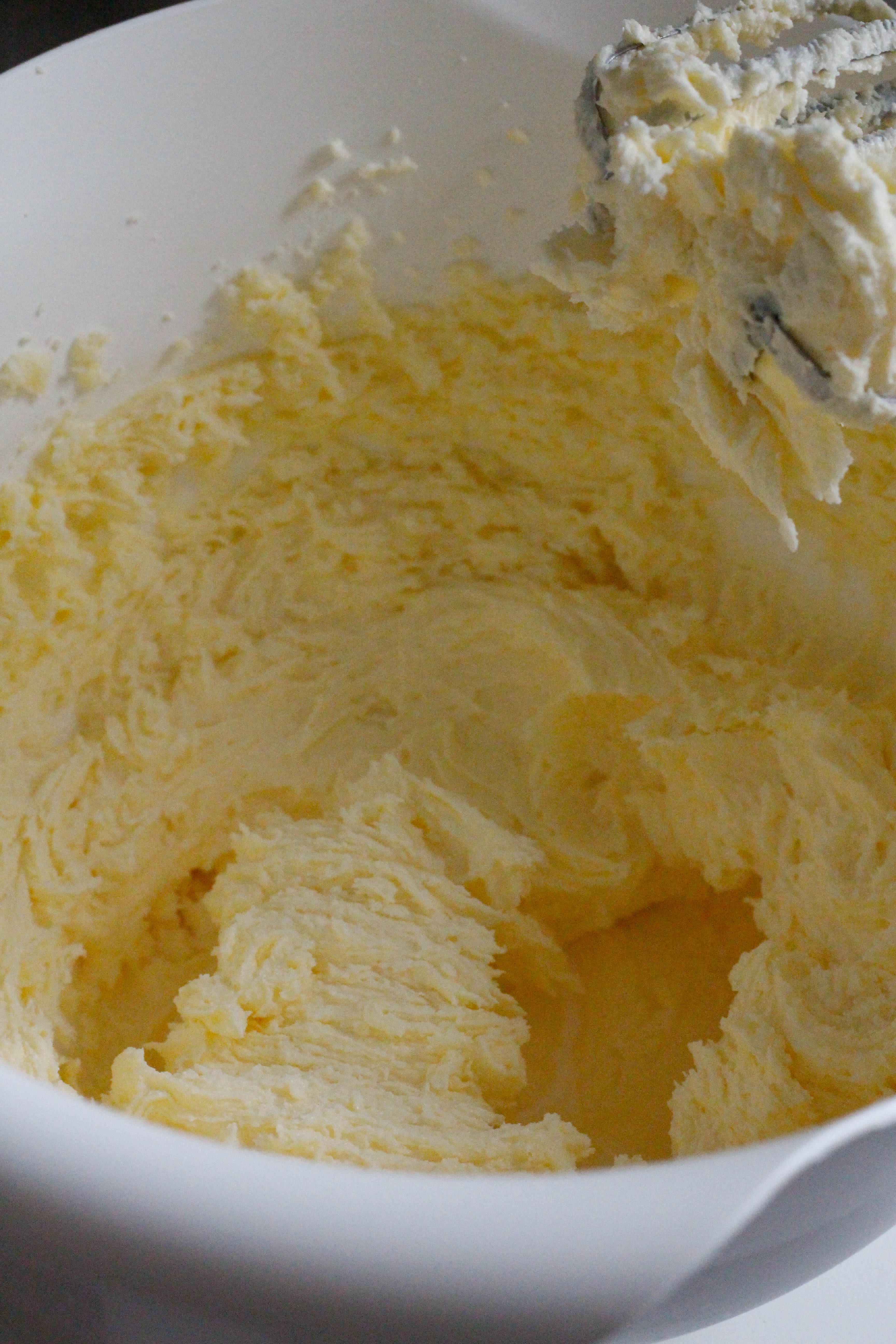 Beat butter until smooth, then add in the caster sugar and continue to beat until light and fluffy.