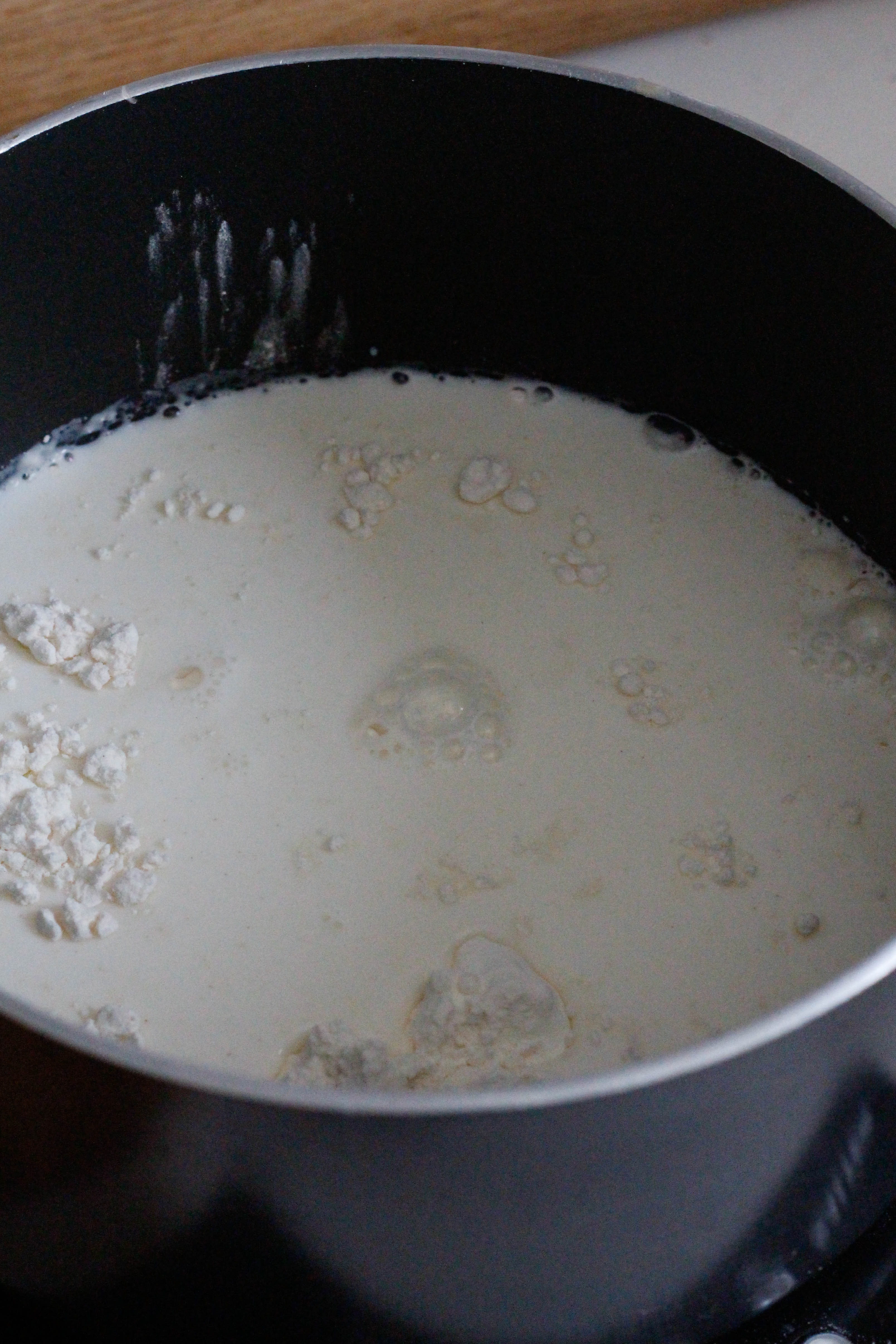 Once the mixture has thickened continue to stir it over the heat for a minute or so, then turn off the heat and set aside to cool completely.