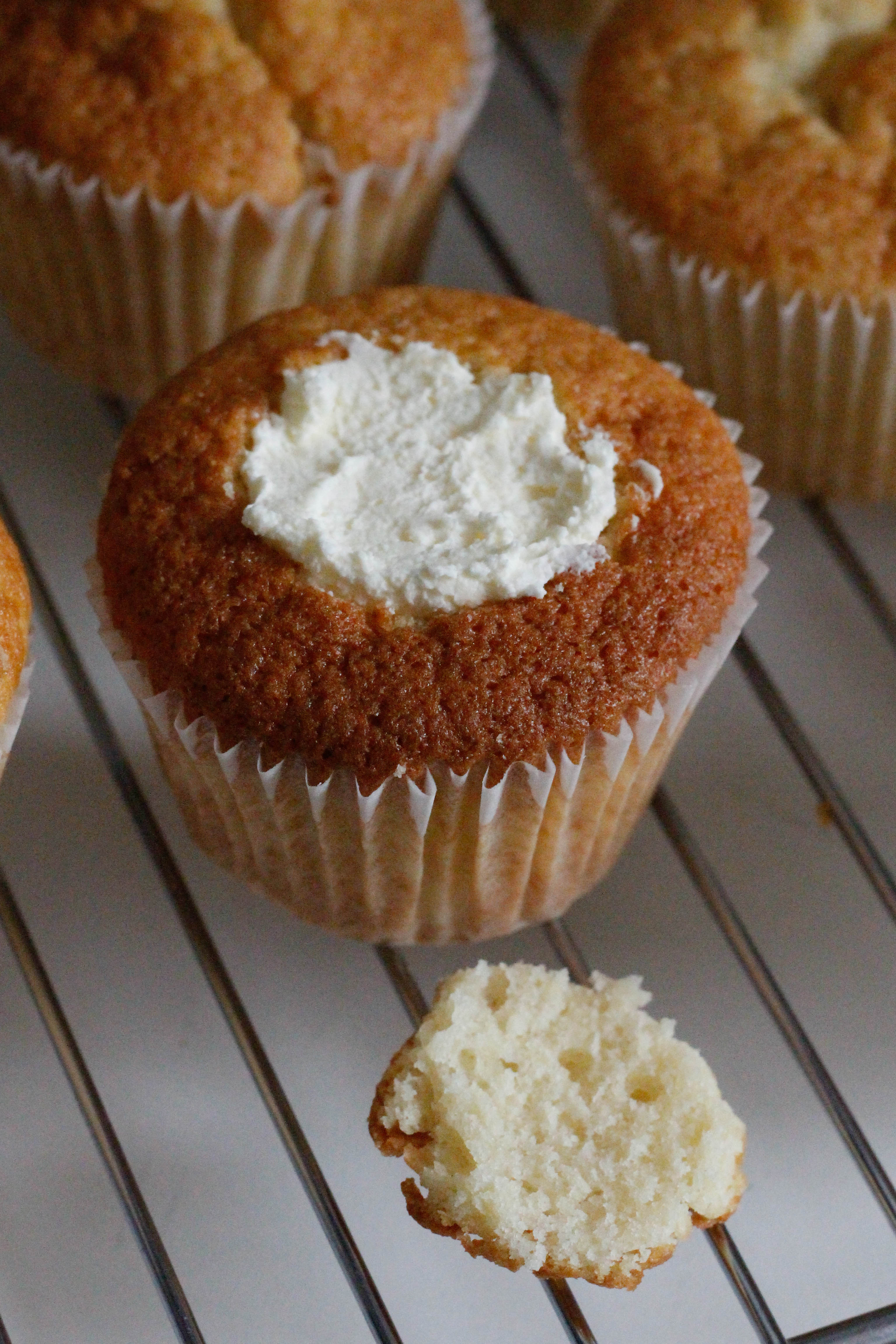 Cut out a small section in the centre of your cupcakes, reserving the removed piece to use as a lid. Fill the cupcake with buttercream, then place the lid on top.