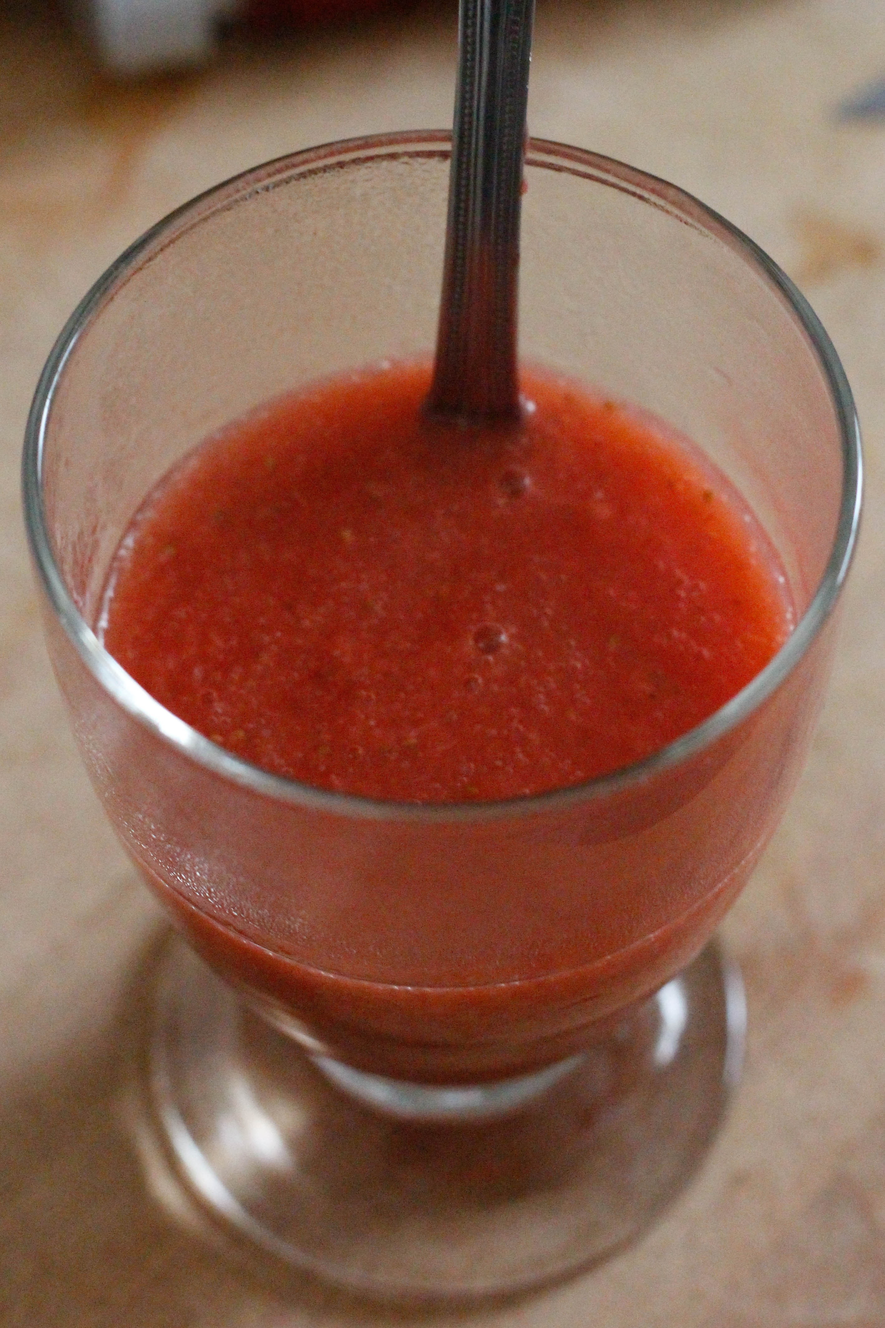 Add the cooled strawberry purée to the remaining buttercream, again, beating in a little at a time to desired taste and texture.