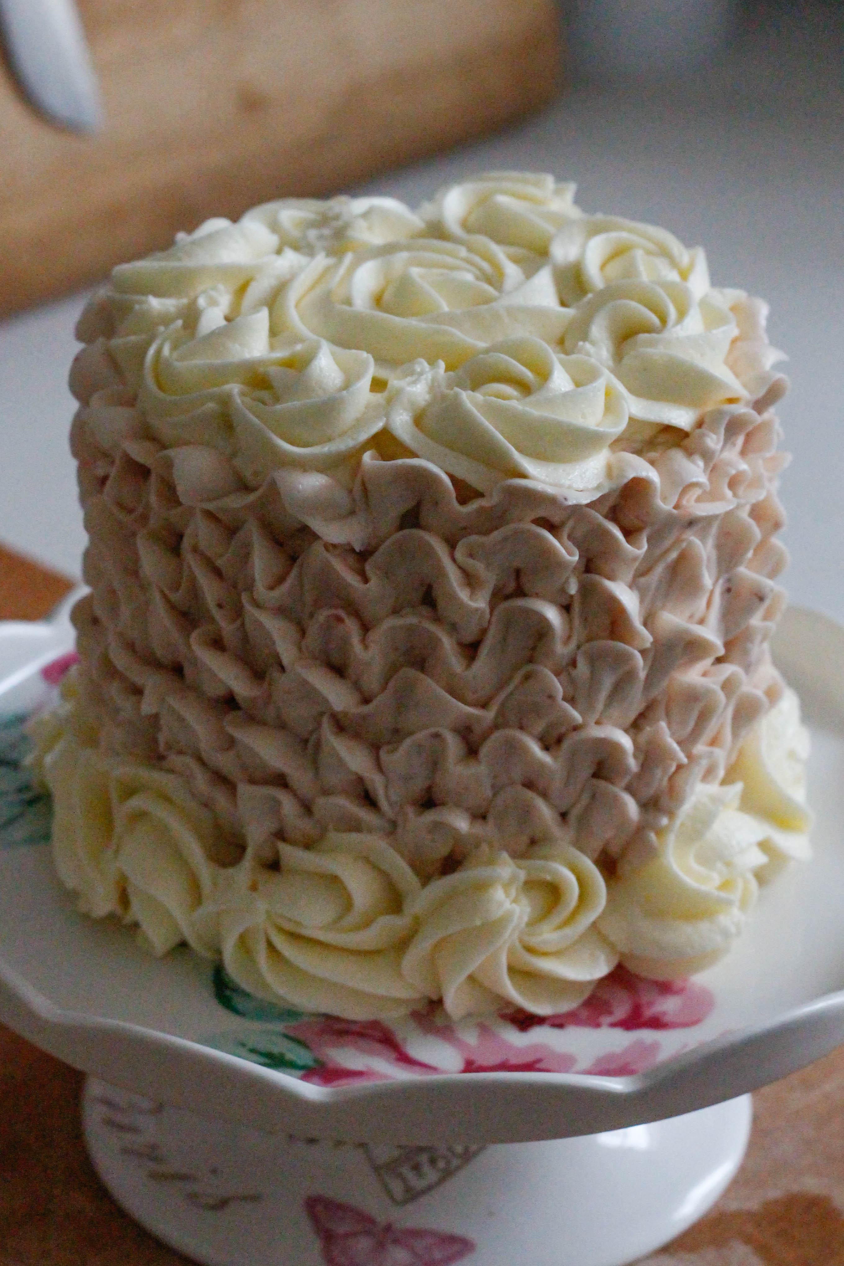 For this cake I did a sort of ‘second crumb coat’, which isn’t entirely necessary. I knew I would be piping a lot of buttercream onto the cake when decorating, but I didn’t want any cake visible if there were gaps in my piping, so I smoothed another very light layer of buttercream over the crumb coat before decorating.