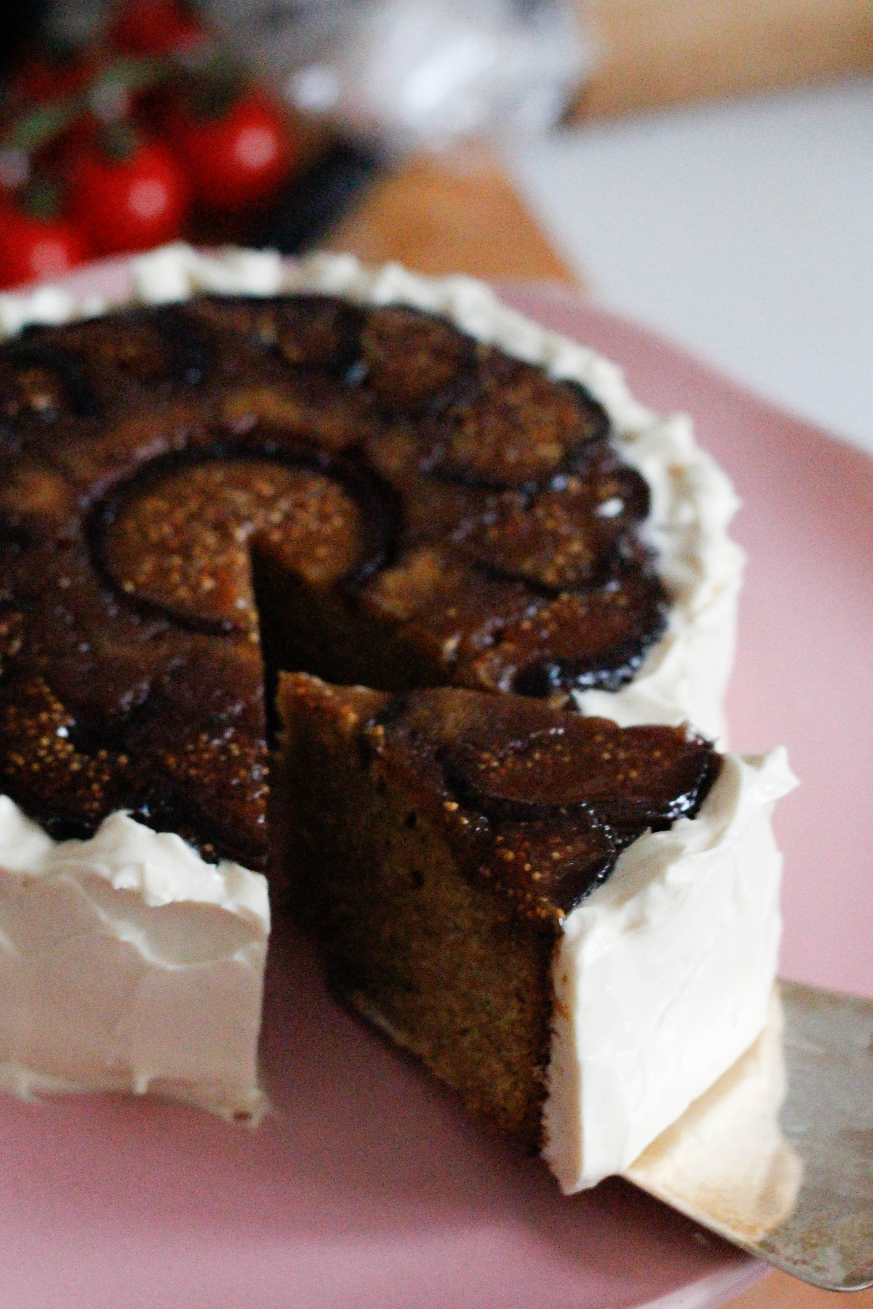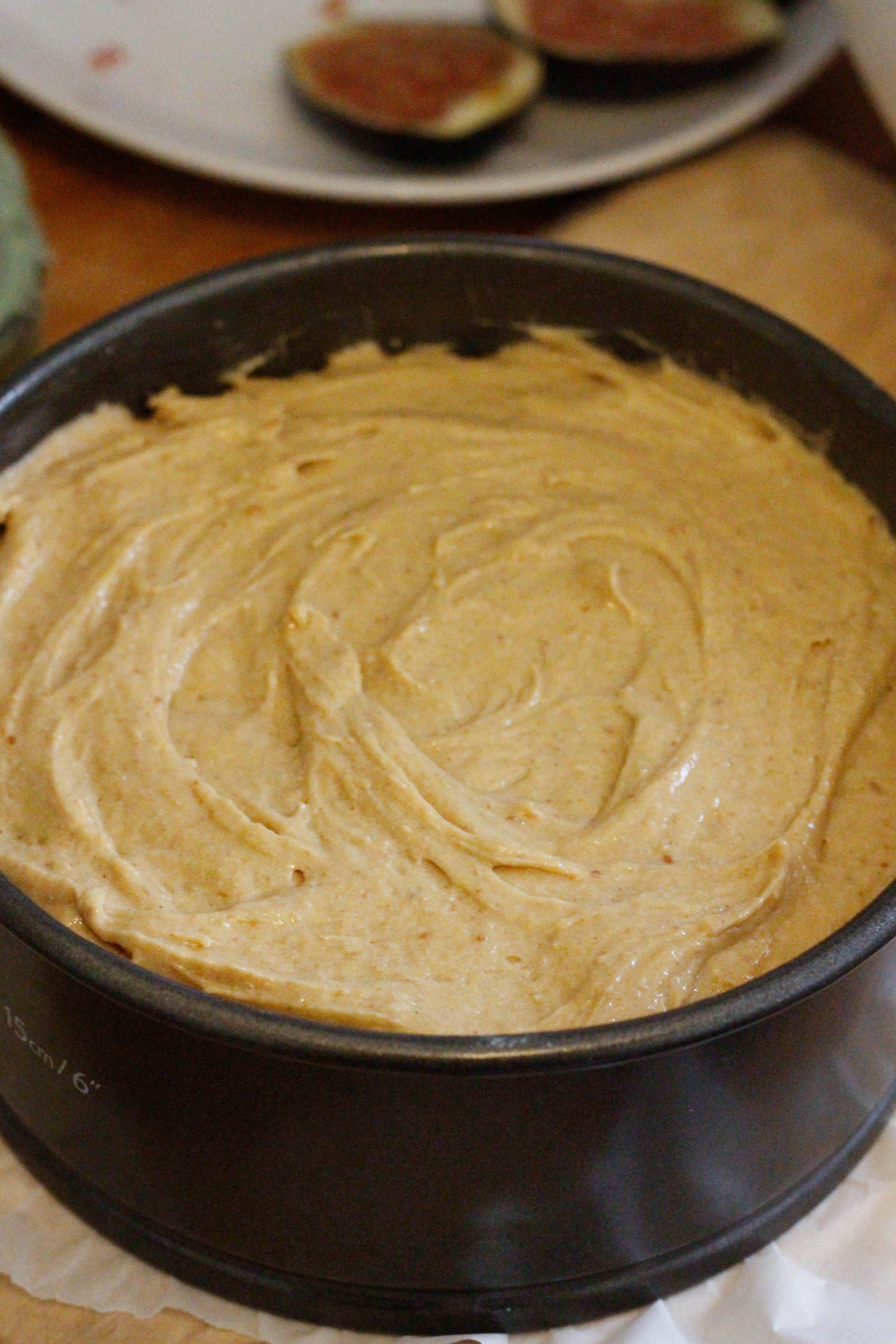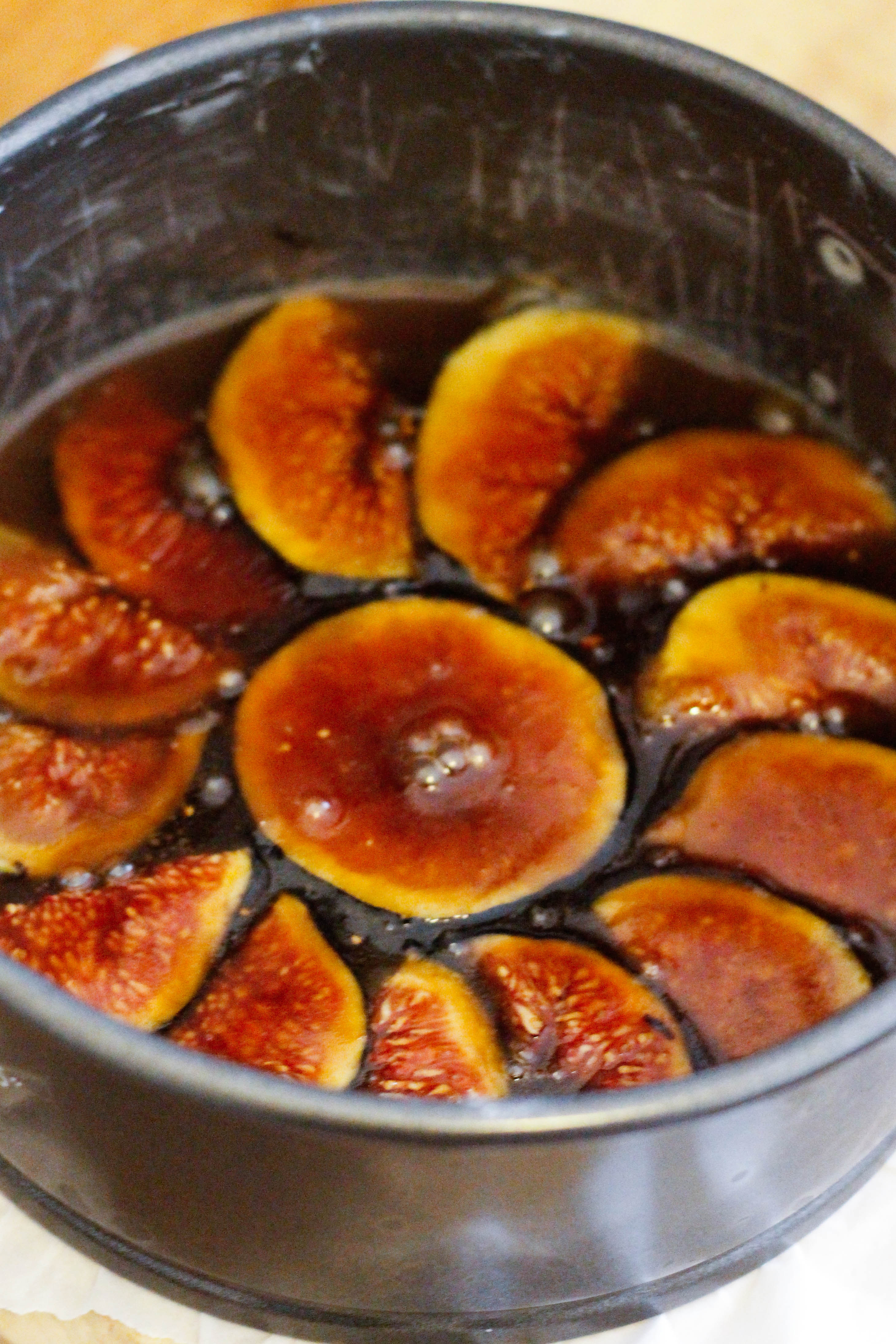 Pour the maple and butter mixture over the figs, then set aside while you prepare the cake batter.