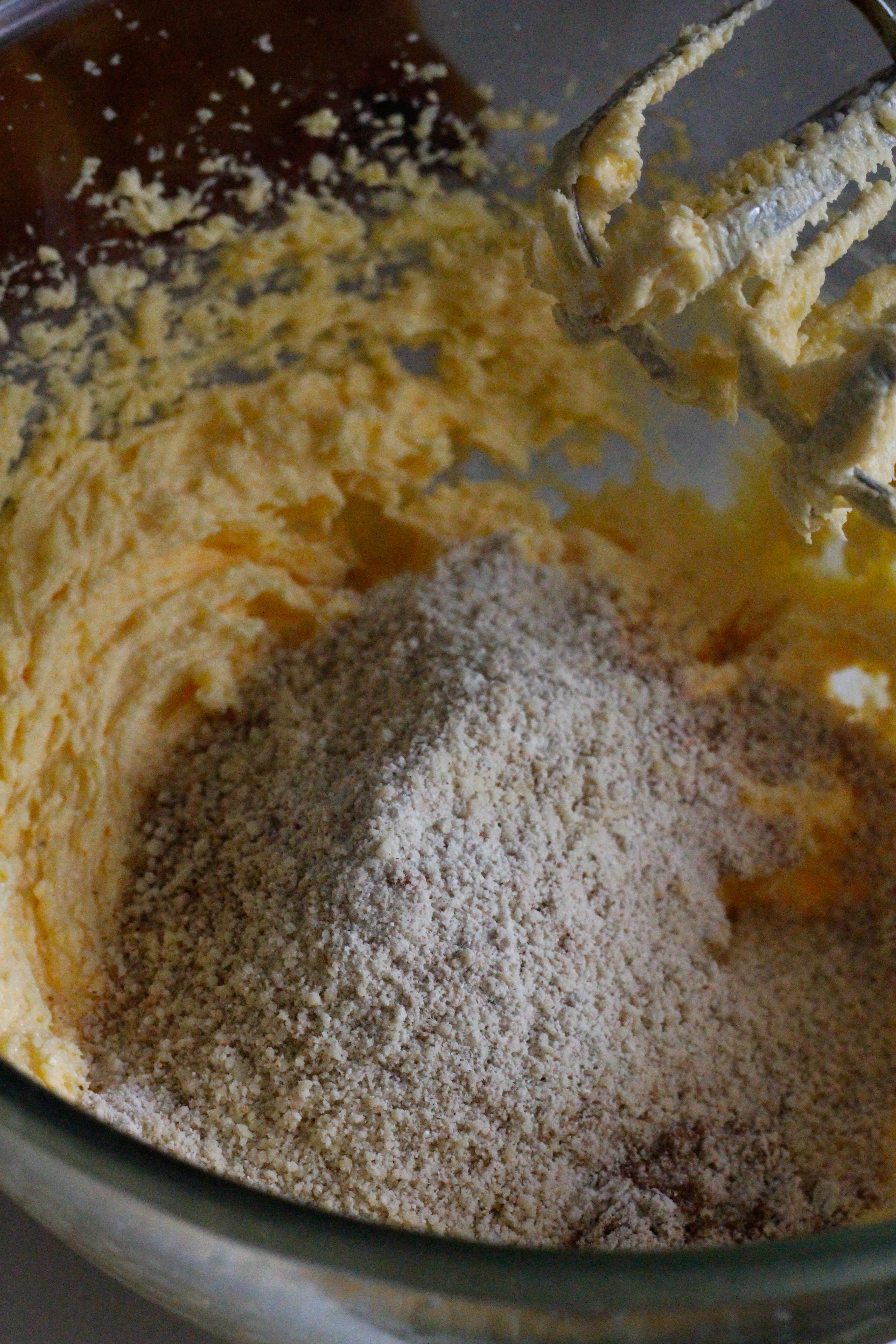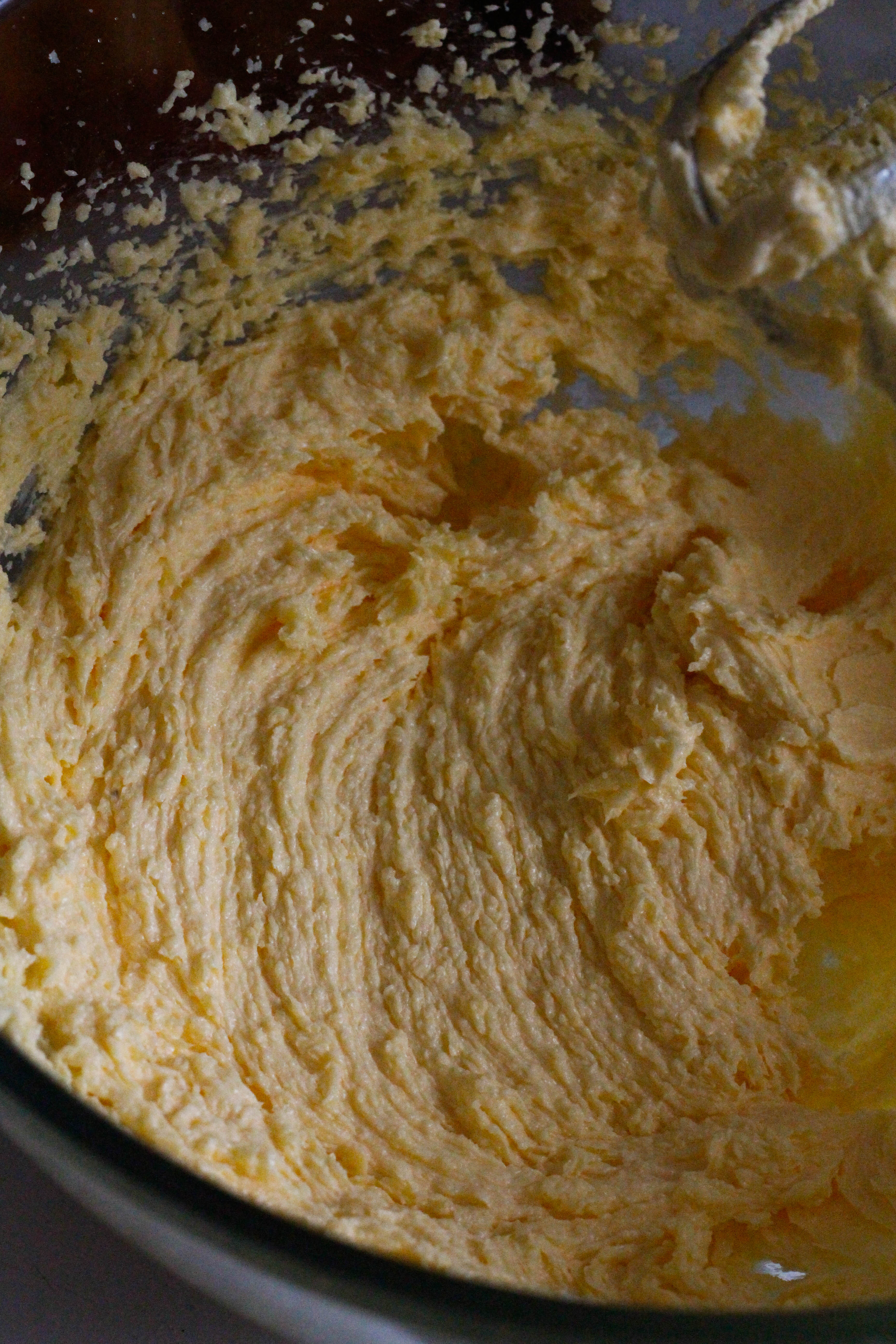 Cream the butter and sugar, then add in the egg yolks one at a time and beat until mixture is light and fluffy.
