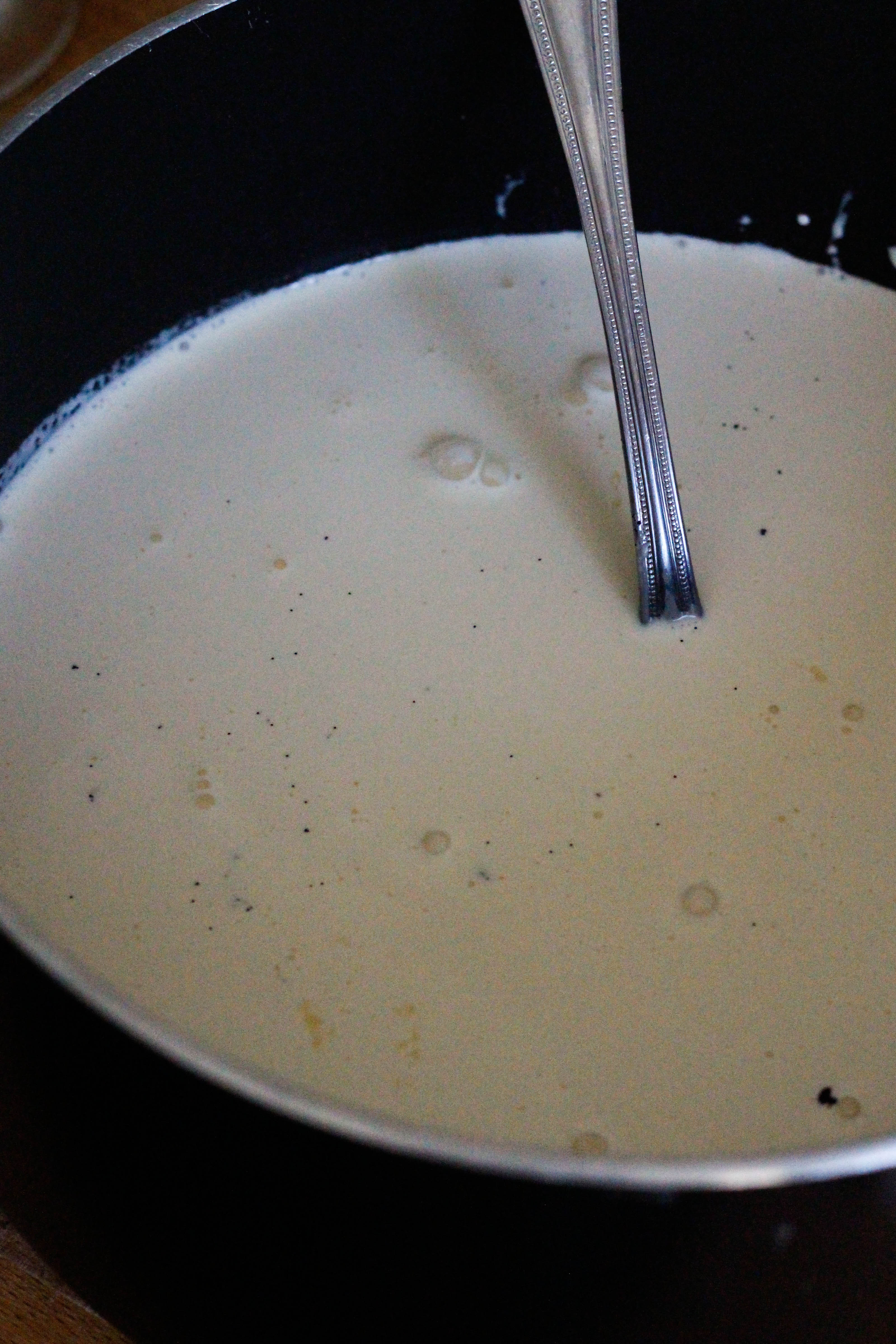 Heat gently until sugar has dissolved, allowing the mixture to simmer just slightly, then remove it from the heat.