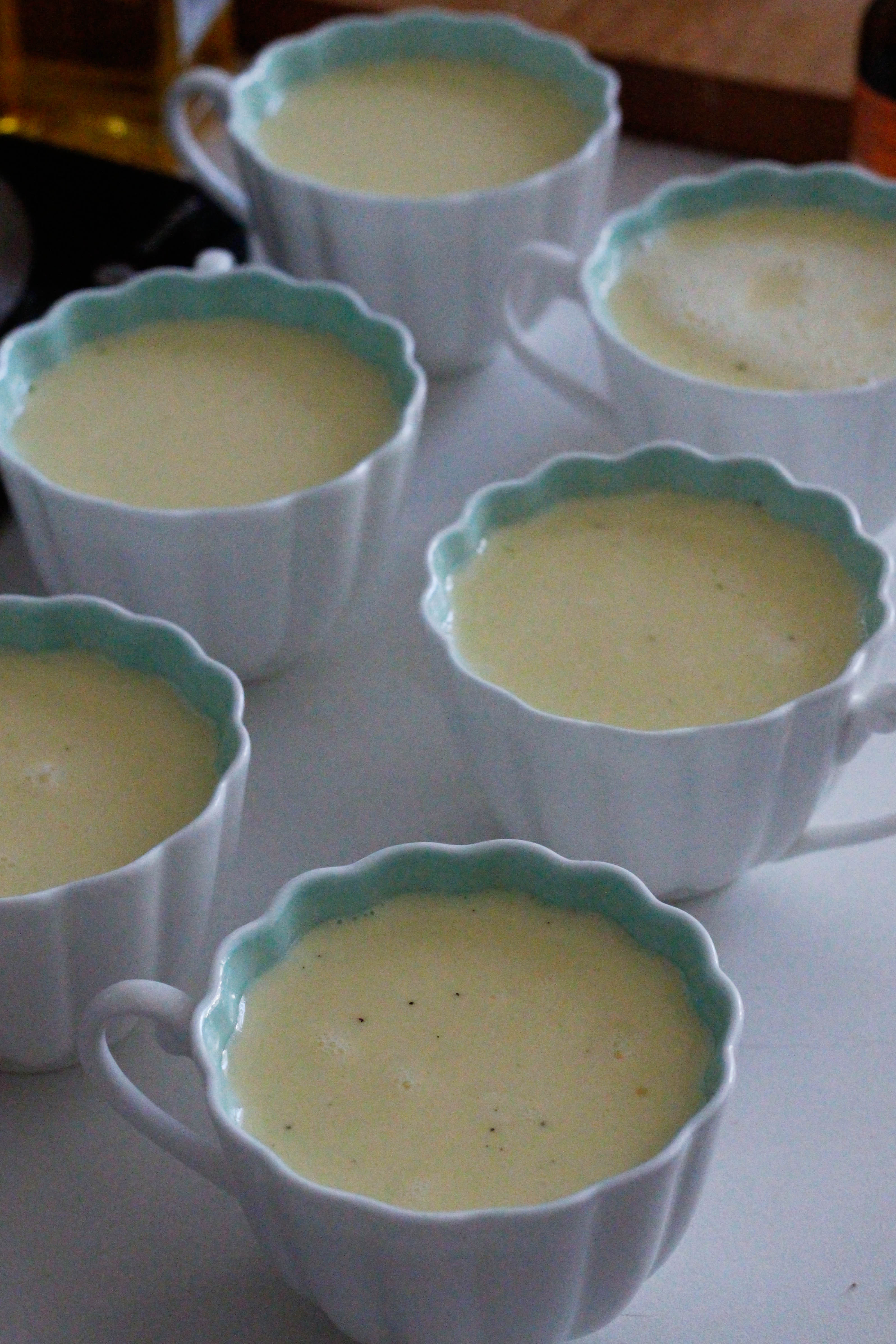 Grease your ramekins, or teacups in my case, with a little flavourless oil – I used rice bran oil – then divide the mixture between the ramekins and refrigerate overnight.