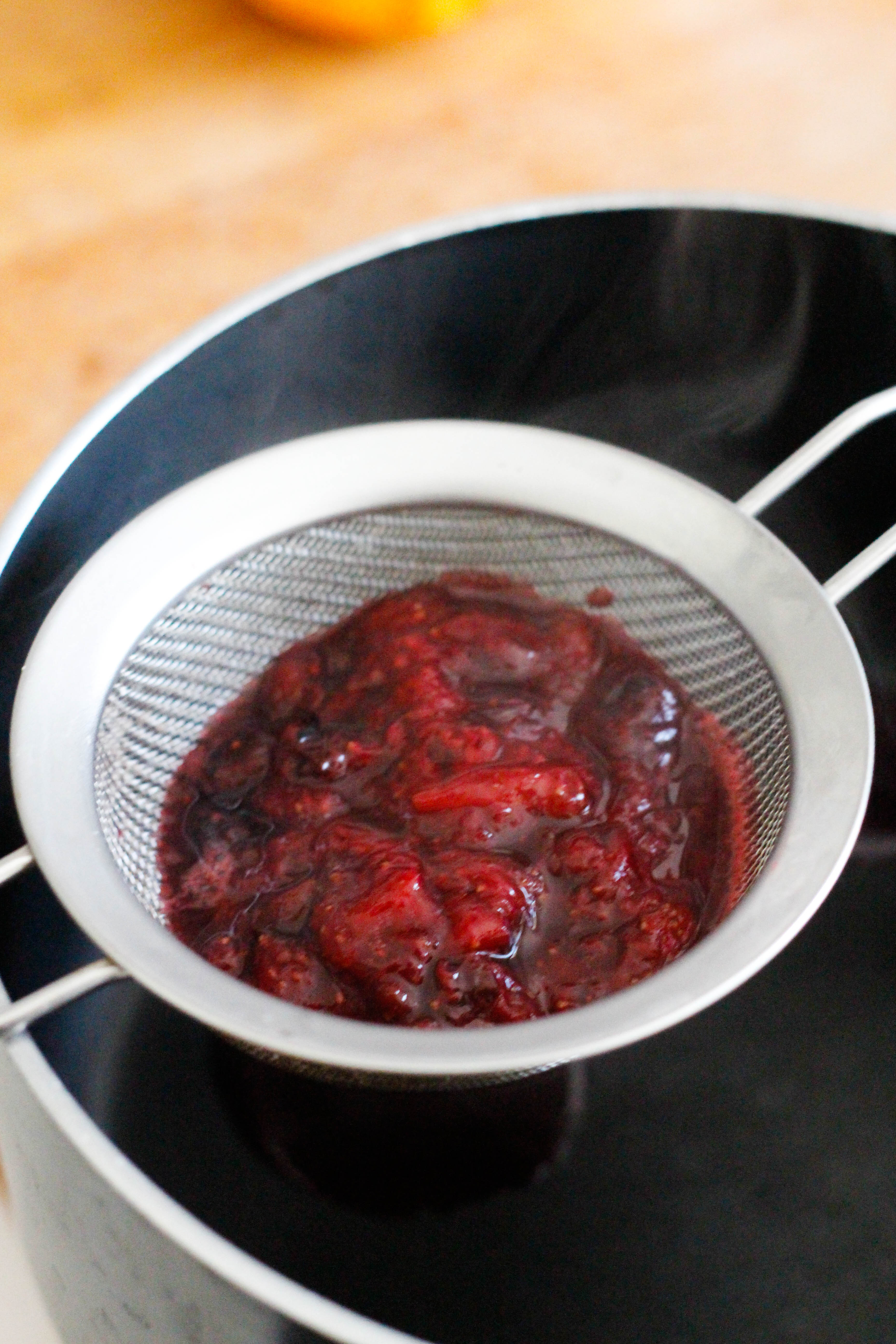 Simmer covered until the berries have softened enough to push through a sieve.