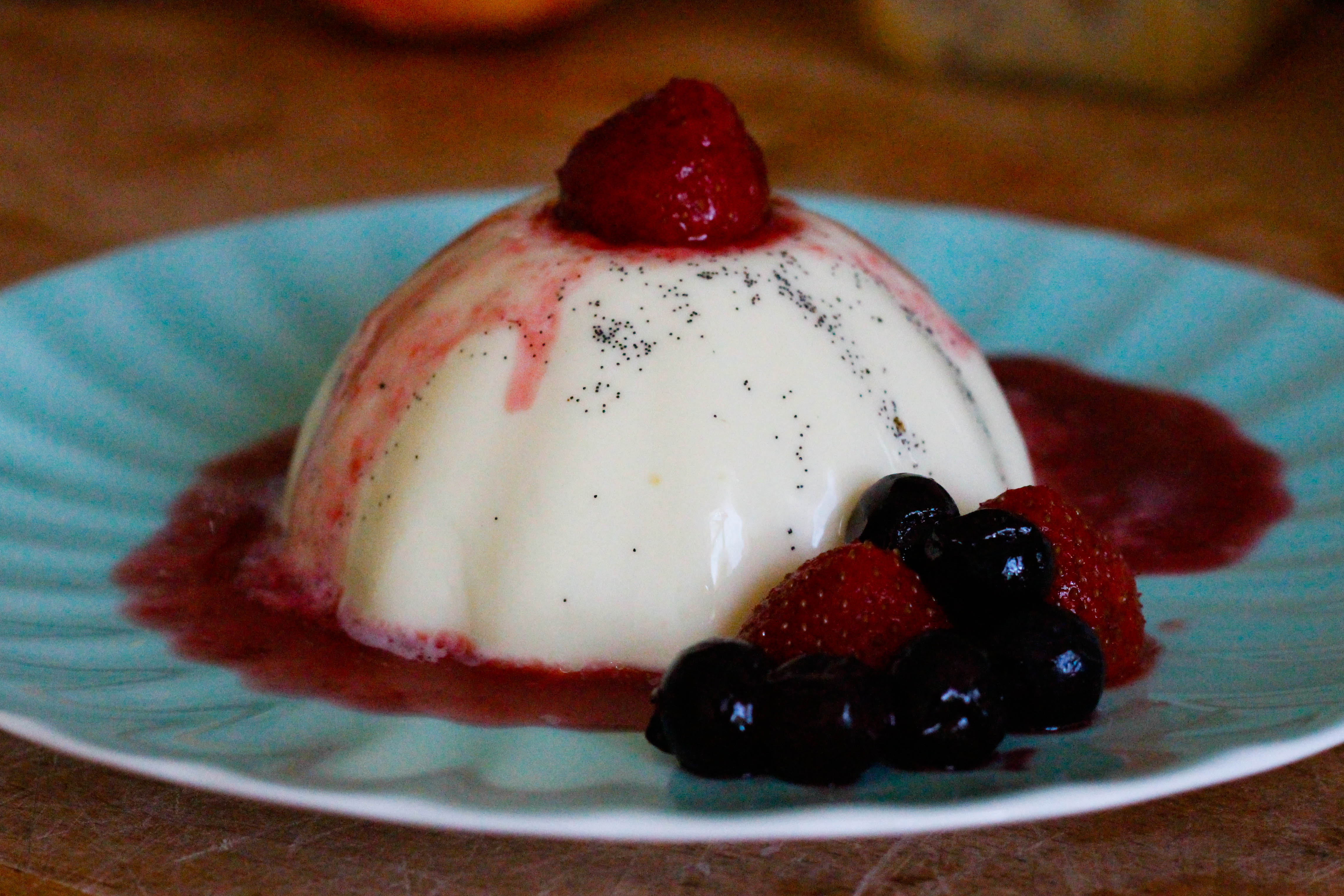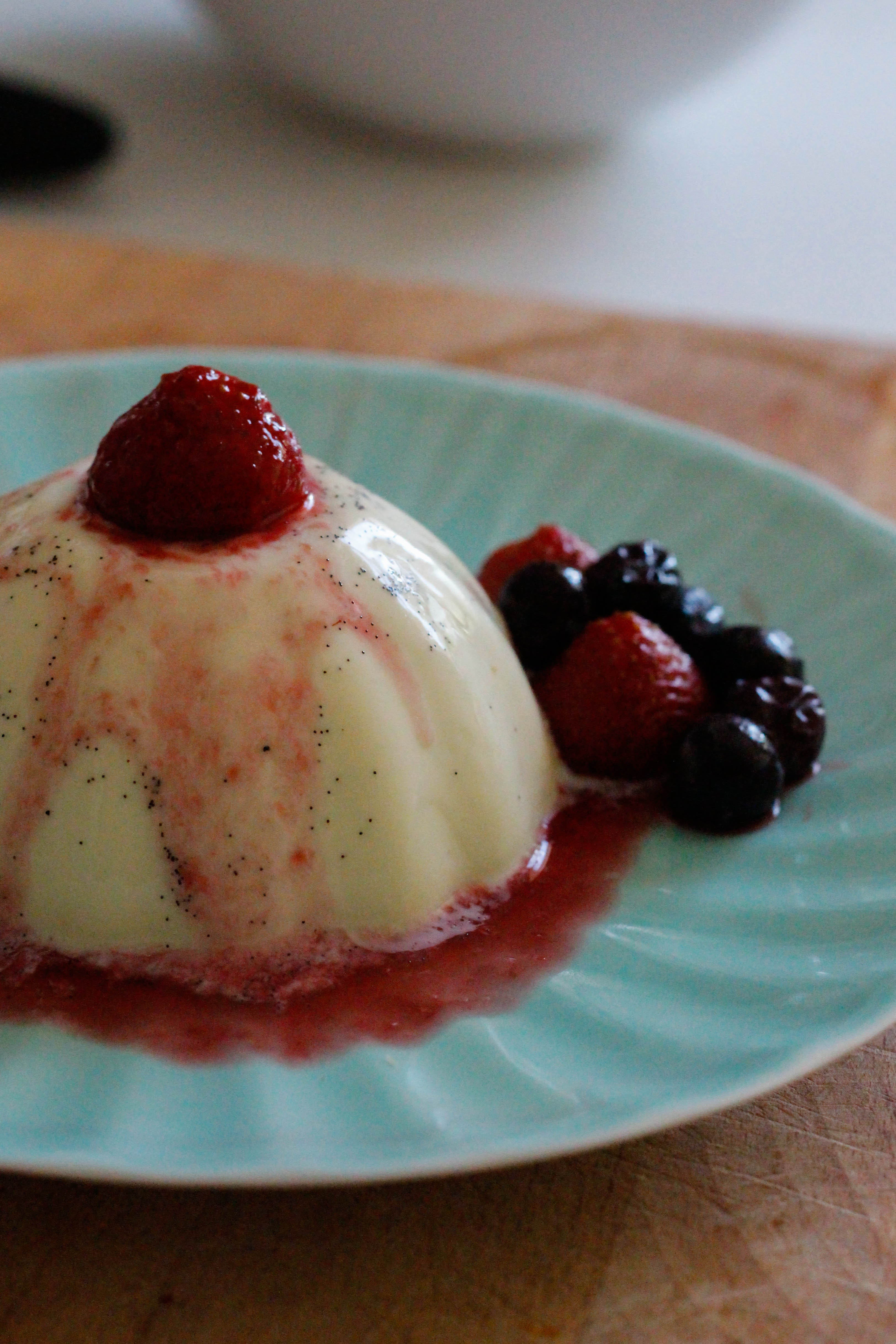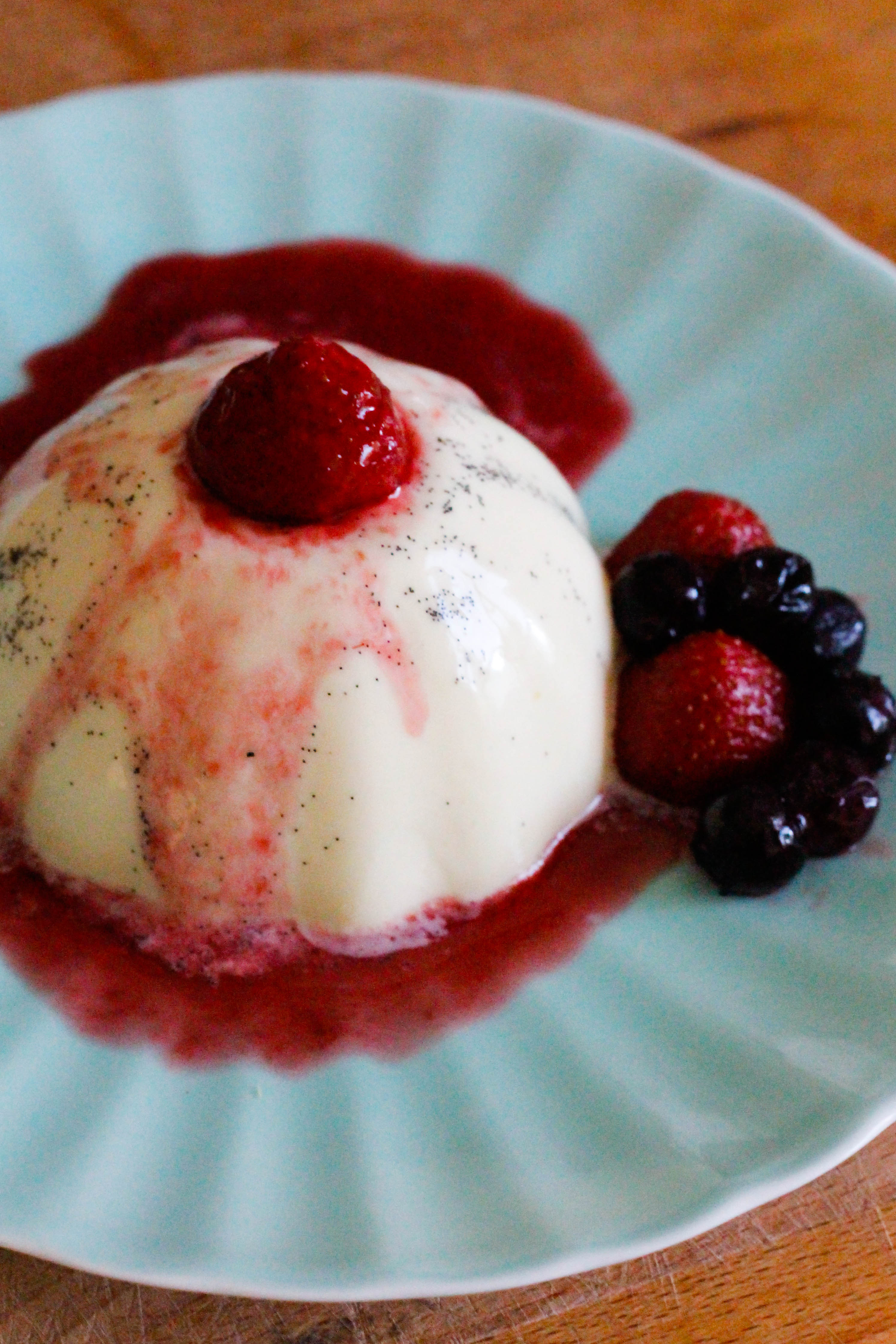 Tip: Dip the base of the ramekins into hot water to help loosen them before turning out onto a plate – but not too hot, and not for too long, or your panna cotta will melt!