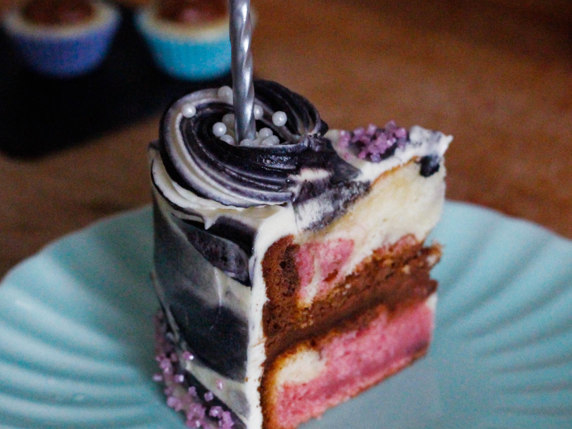 I was picturing a black and white cake, but these little ice-cream coloured chocolate cups kept entering my mind… and then with that came the Neapolitan flavours and their delightful marbled appearance. And then there was the coconut… but… but… I also love pistachio! Oh gosh… this cake could get messy.