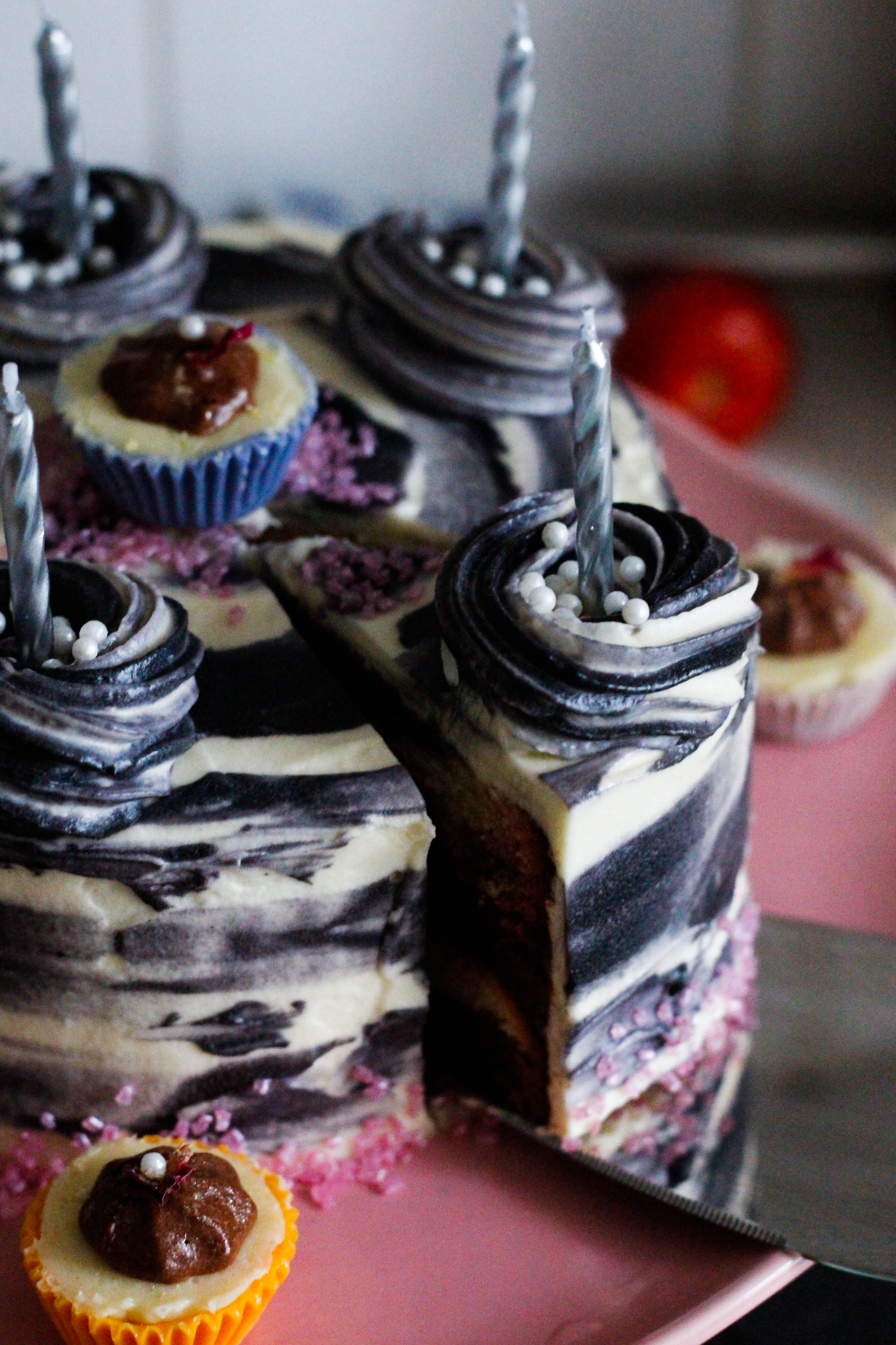 Deciding on a quiet one this year, I figured the only cake I would be seeing would be a slice of whatever the restaurant had on offer after dinner, or perhaps something from a shop… If my other half had figured out that cakes can be bought, and that they don’t just magically manifest on the kitchen bench of all homes… (not that they do in ours, a lot of work goes into those cakes!)