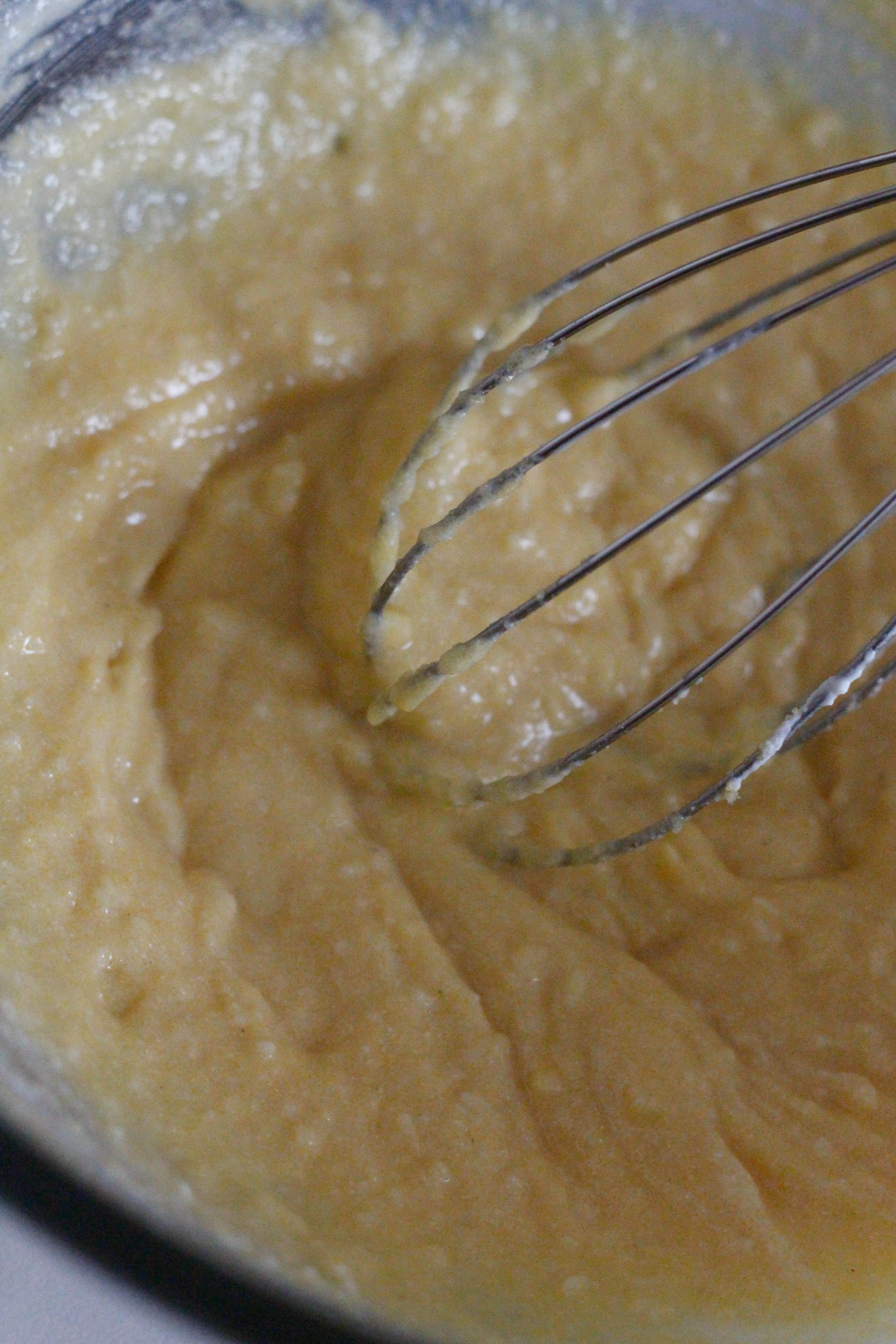 Place the cream mixture back on to a low heat, bringing to a gentle simmer again. Meanwhile, start beating the egg yolks and sugar, continuing to beat until the mixture is light and creamy.