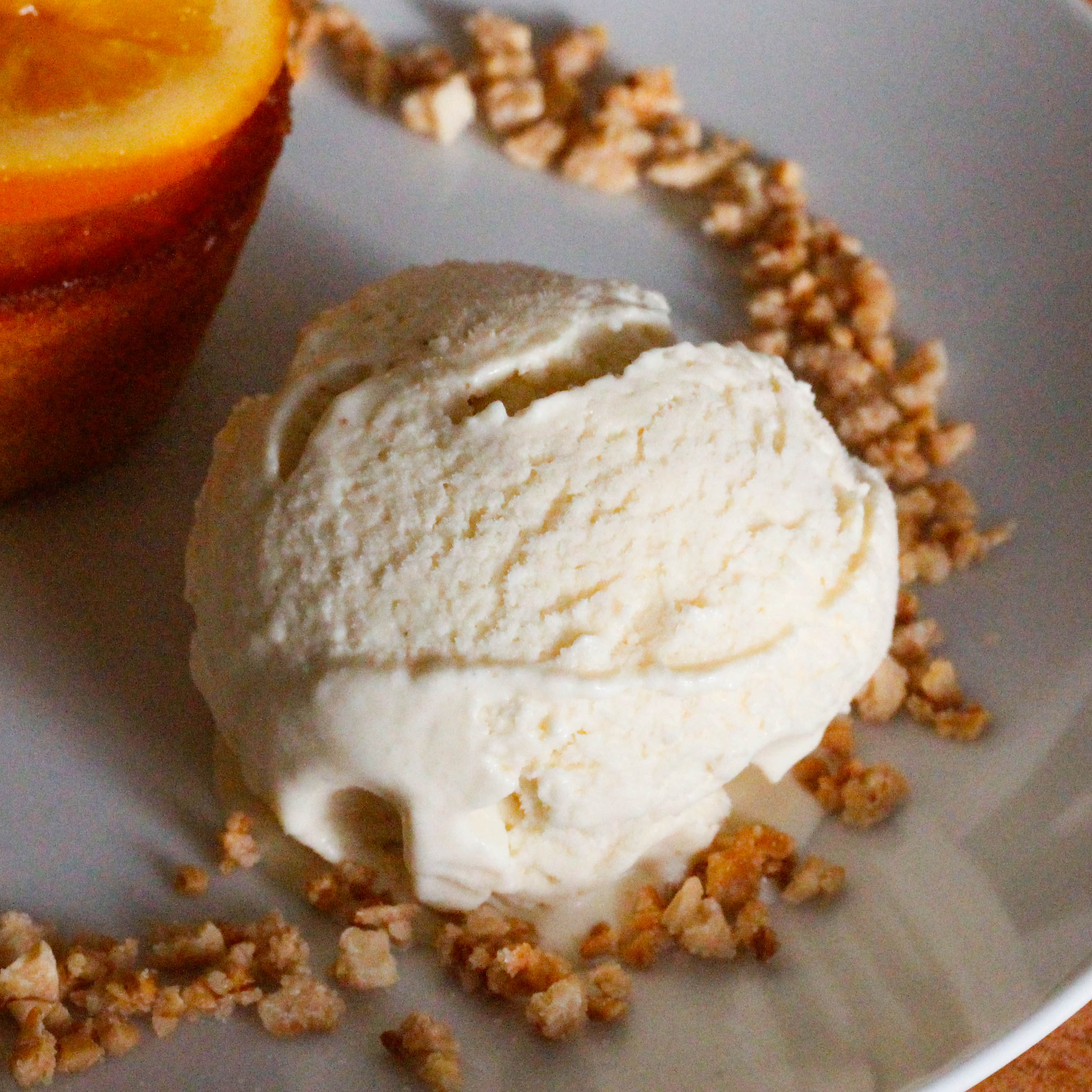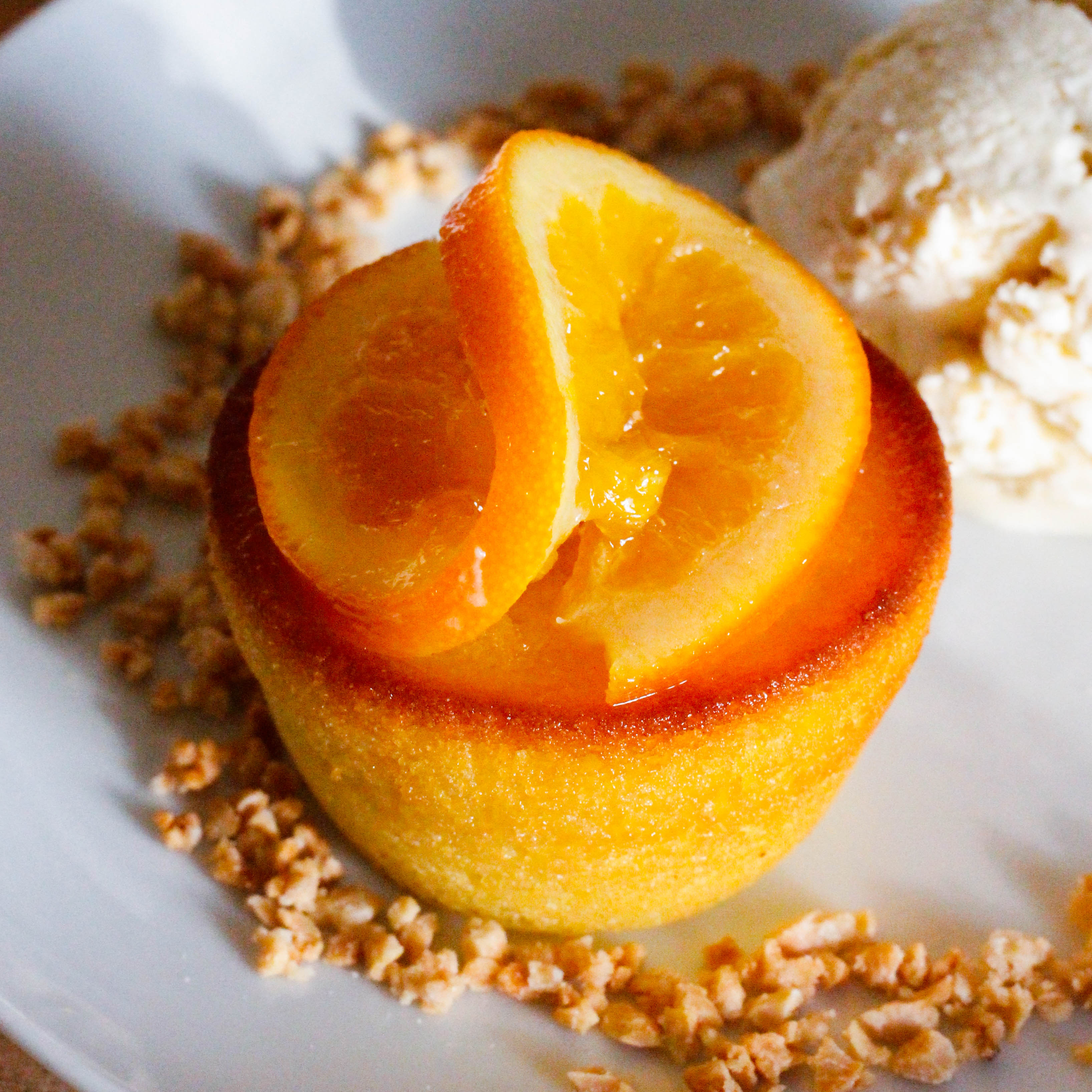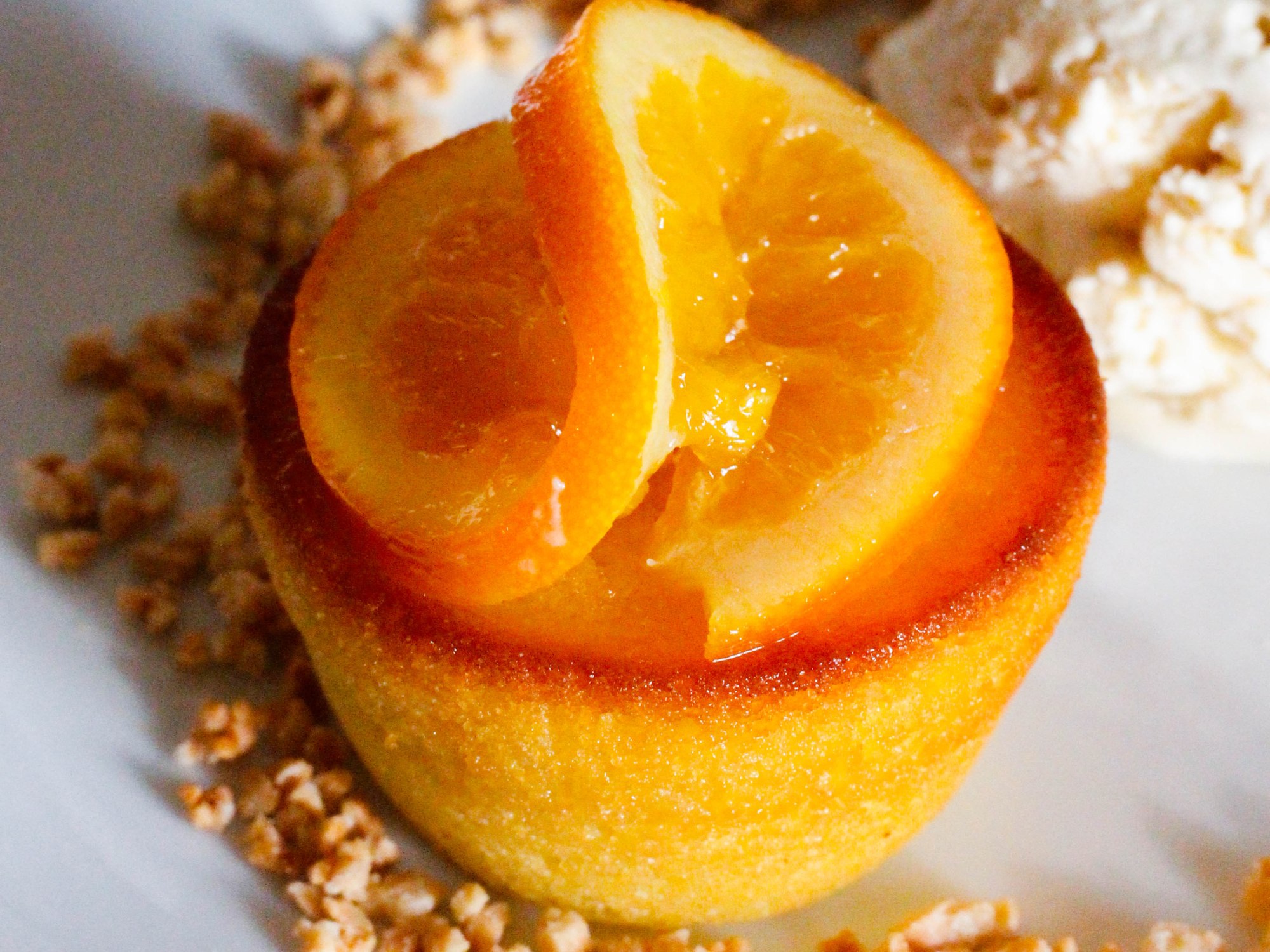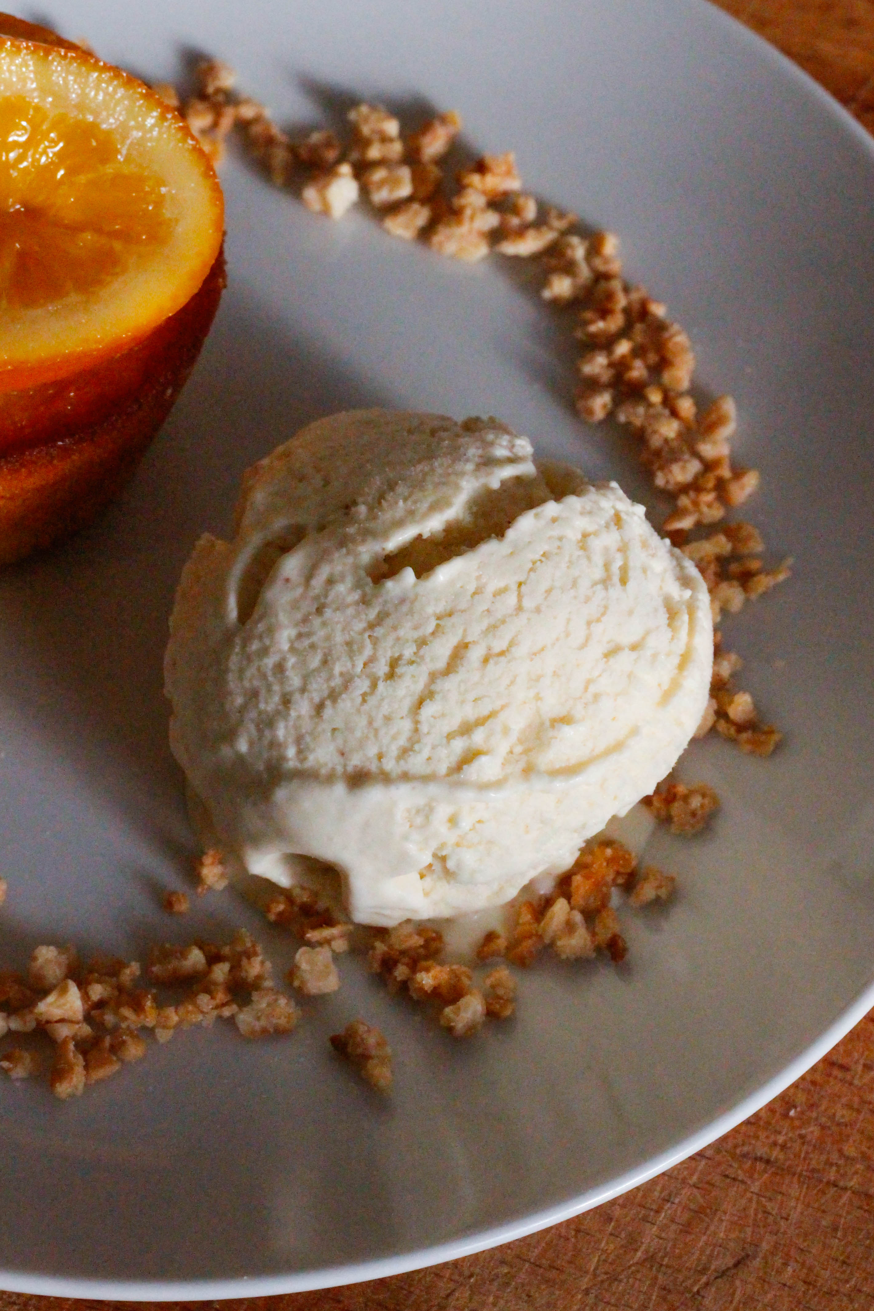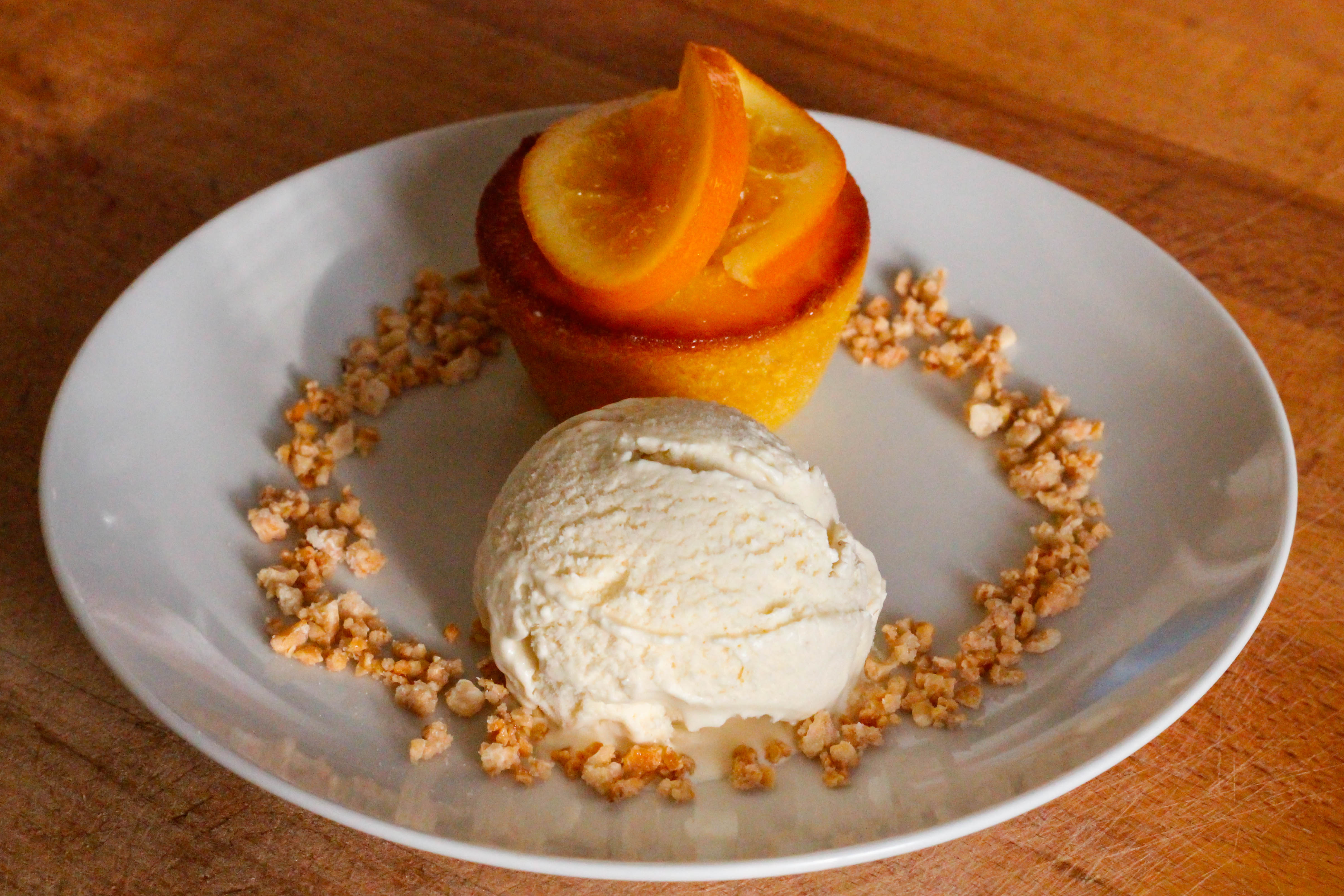 Almond & Polenta Orange Syrup Cakes with Eggnog Ice Cream