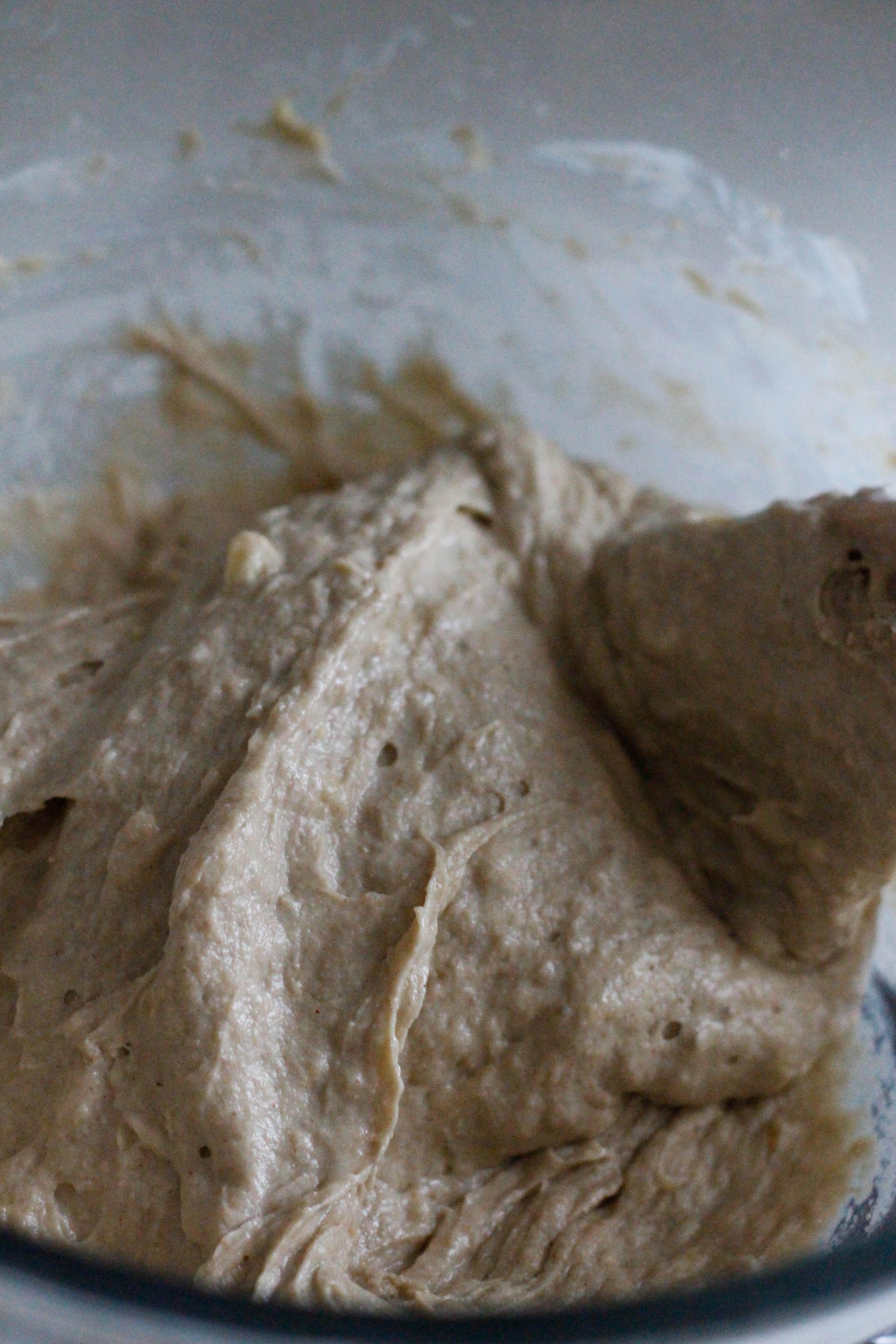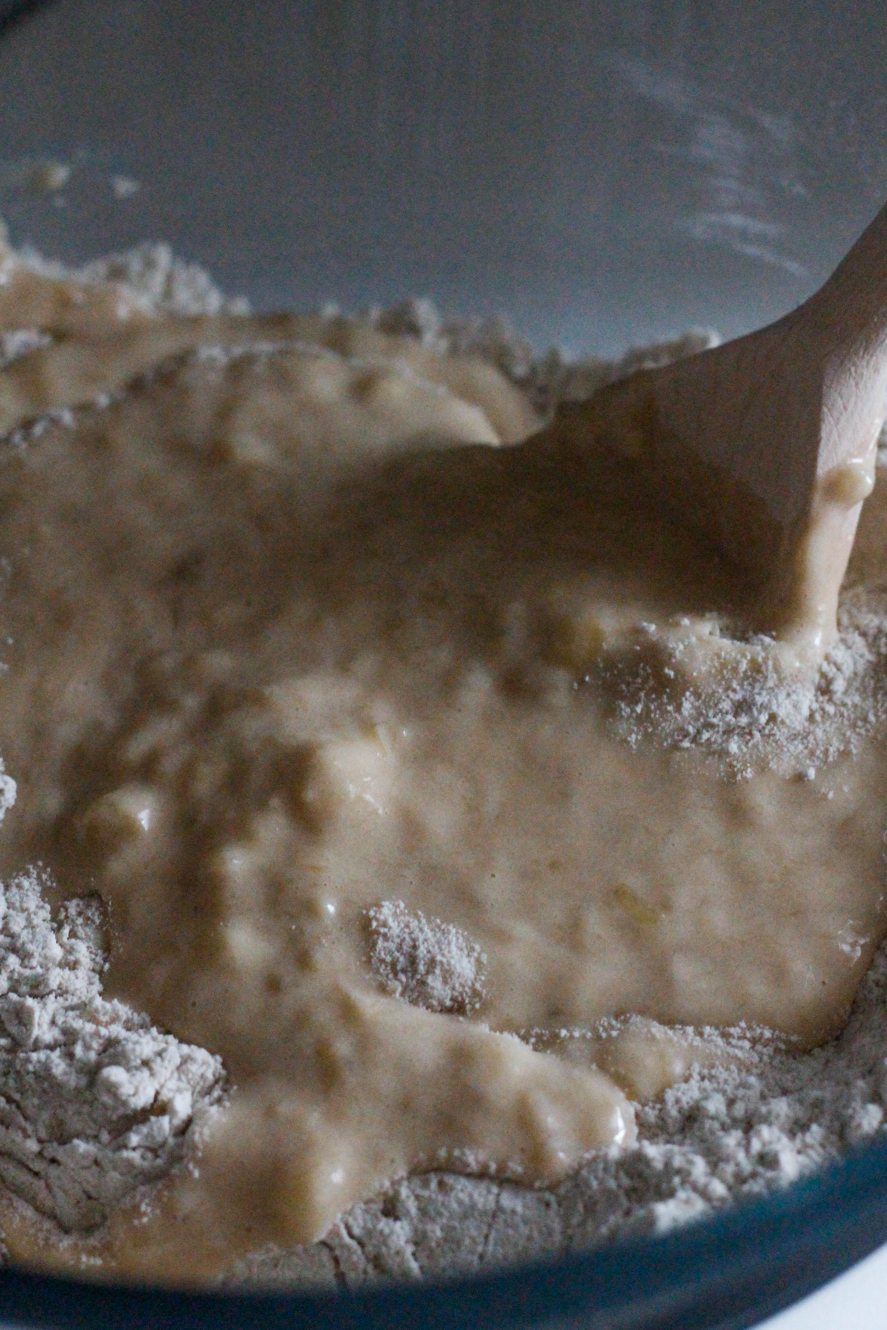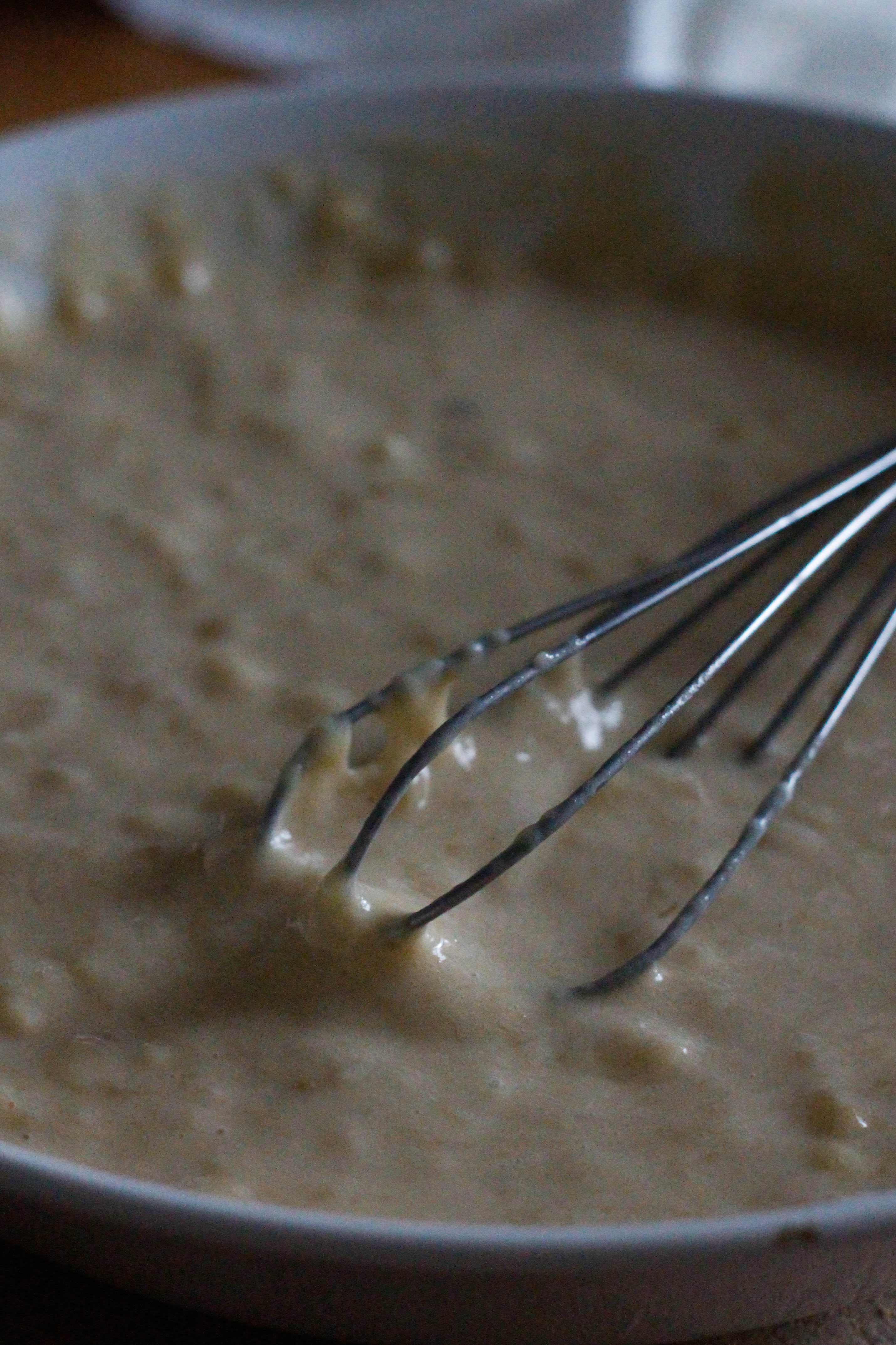 If you live in a cooler climate, your coconut oil will be solid at room temperature. Partially submerge the jar (closed) in a bowl of boiling water to melt it, then add two tablespoons to the banana mixture and whisk to combine.