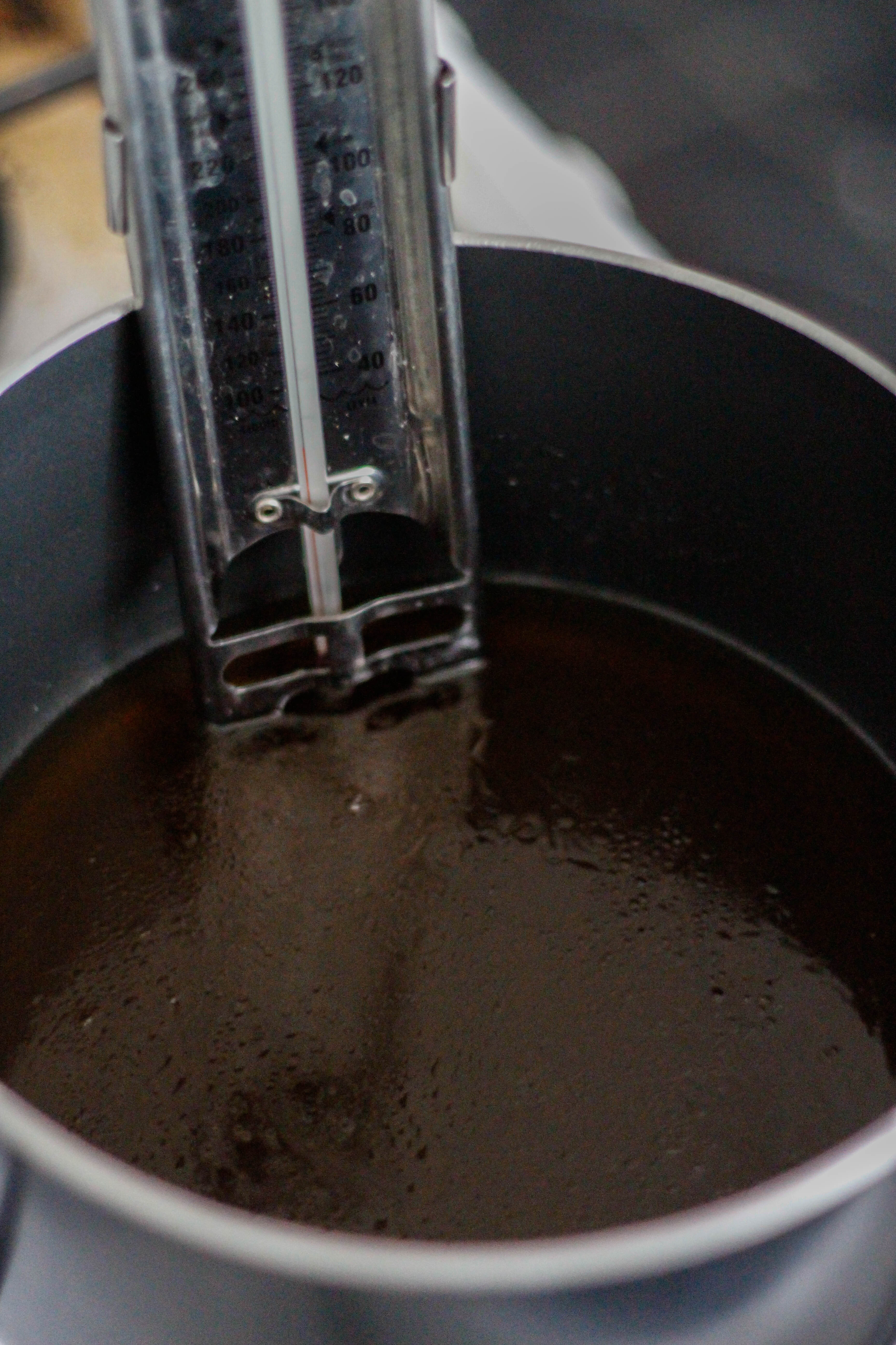 Get comfortable, and start stirring the syrup with a wooden spoon – you’ll be going for around thirty minutes. Eventually, the syrup will go from sticky and opaque to silky and matte. It will likely harden after sitting, and will become somewhat crumbly and powdery – this is fine.