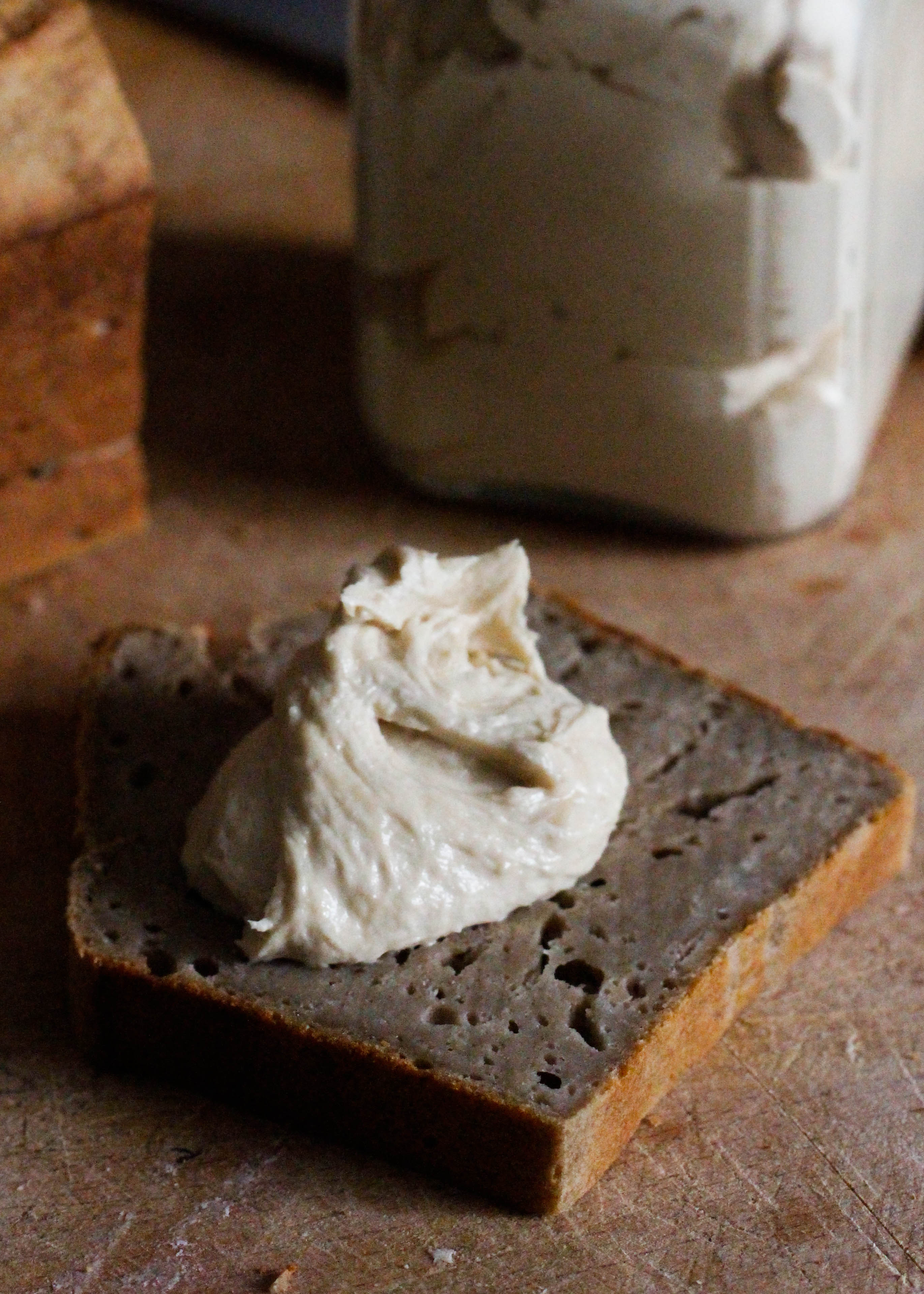 I topped this banana bread with a light and creamy whipped maple butter. I won’t pretend this is particularly good for you, but as pure maple syrup is a natural sweetener, it is a good alternative to sugar packed jams and other spreads. I have talked about maple butter before in this post – if you’ve read it, you will know it is not something you can whip up in a few minutes, but the effort is certainly worth it! This recipe is more of a whipped butter than a frosting, but it is still light, fluffy and incredibly tasty.