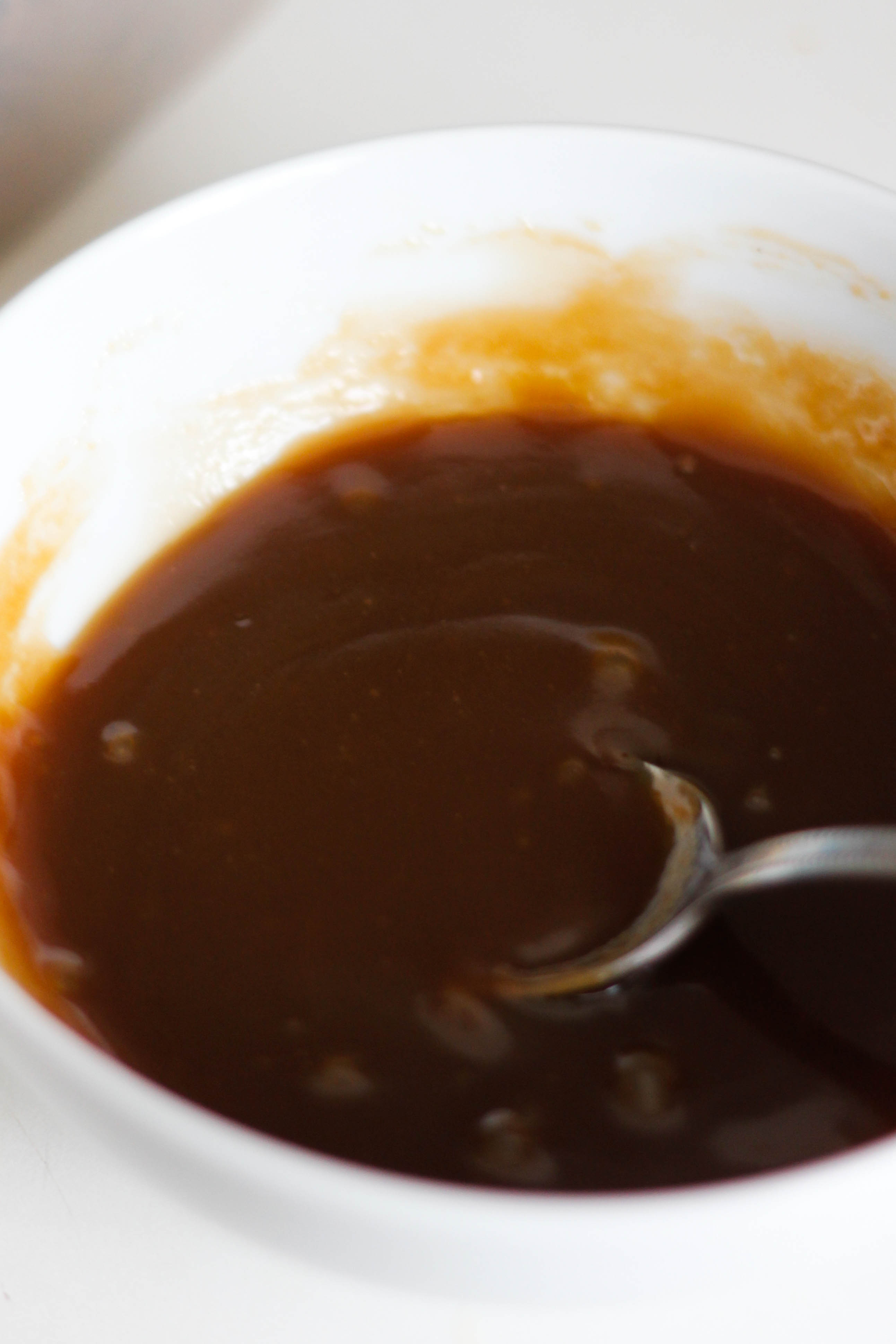 Place the brown sugar, butter and salt into a saucepan and melt over medium heat. Allow to simmer for a minute, then add the sour cream. Whisk over the heat until the sour cream has dissolved, then leave to simmer for a further minute or so, stirring intermittently. Set aside to cool.