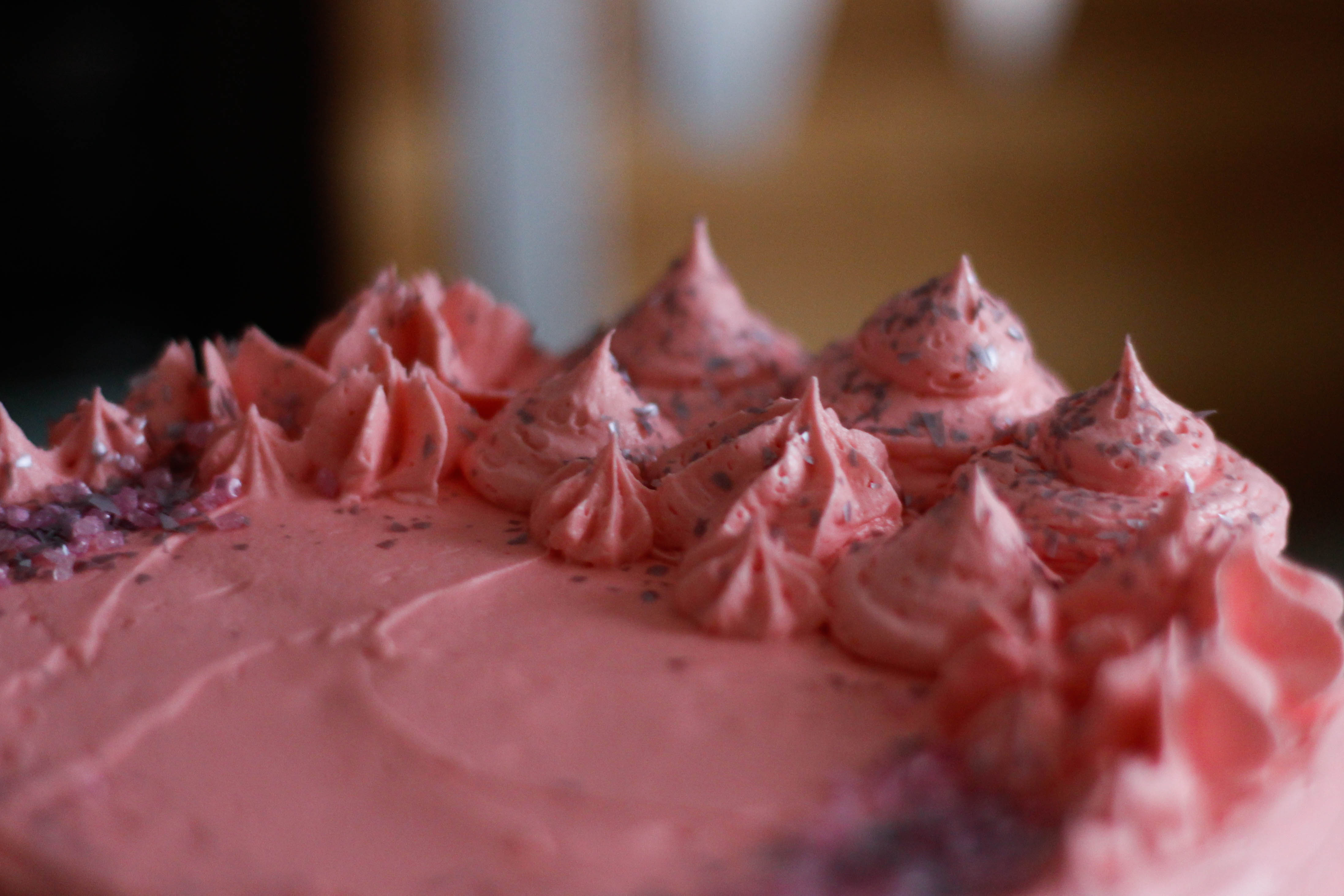 Divide the mixture between the two cake tins and bake each layer separately for 35 minutes, or until a cake skewer comes out with no uncooked cake batter on it! Set aside to cool completely.