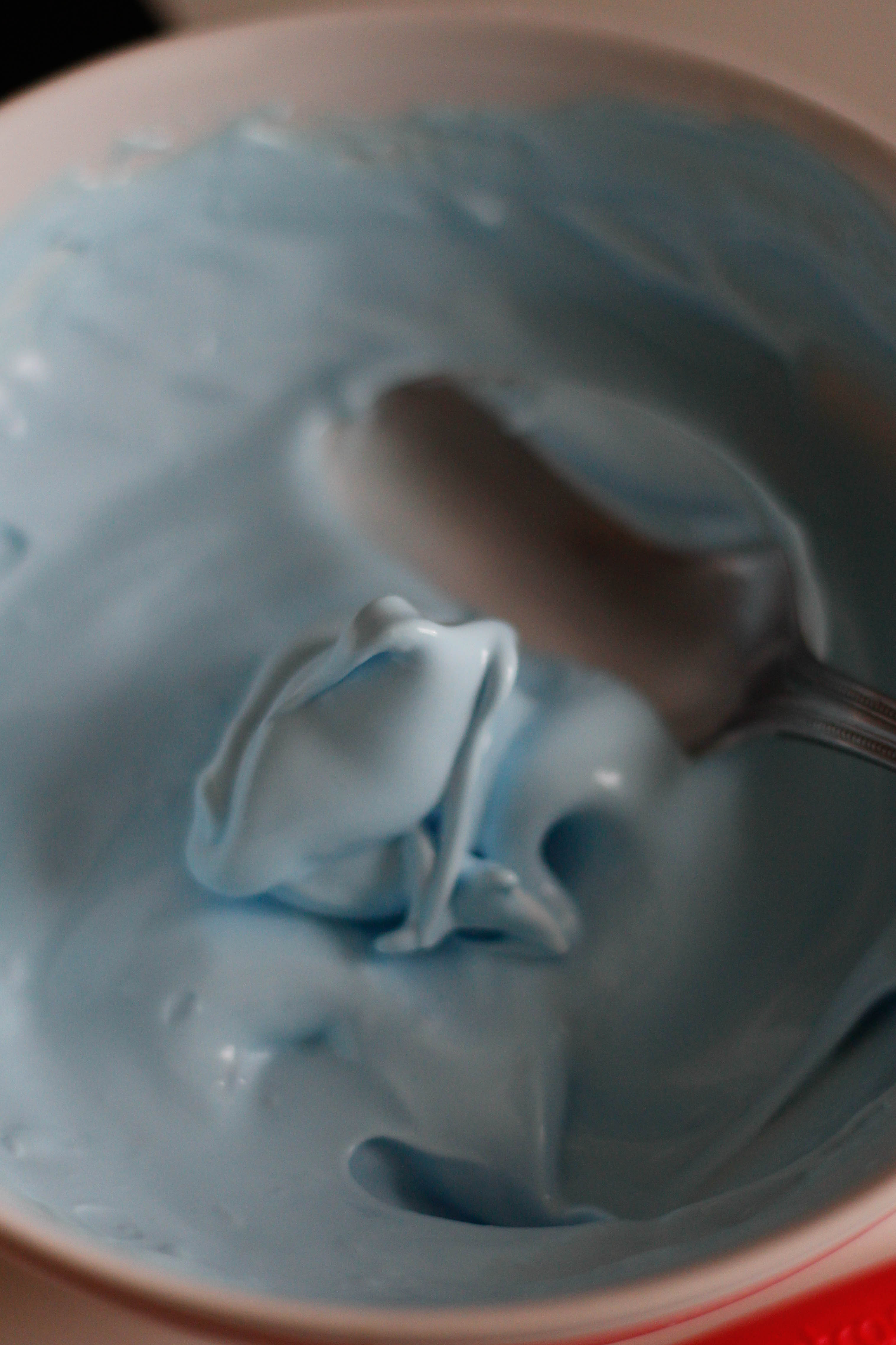 food colourings (pink, blue, purple)