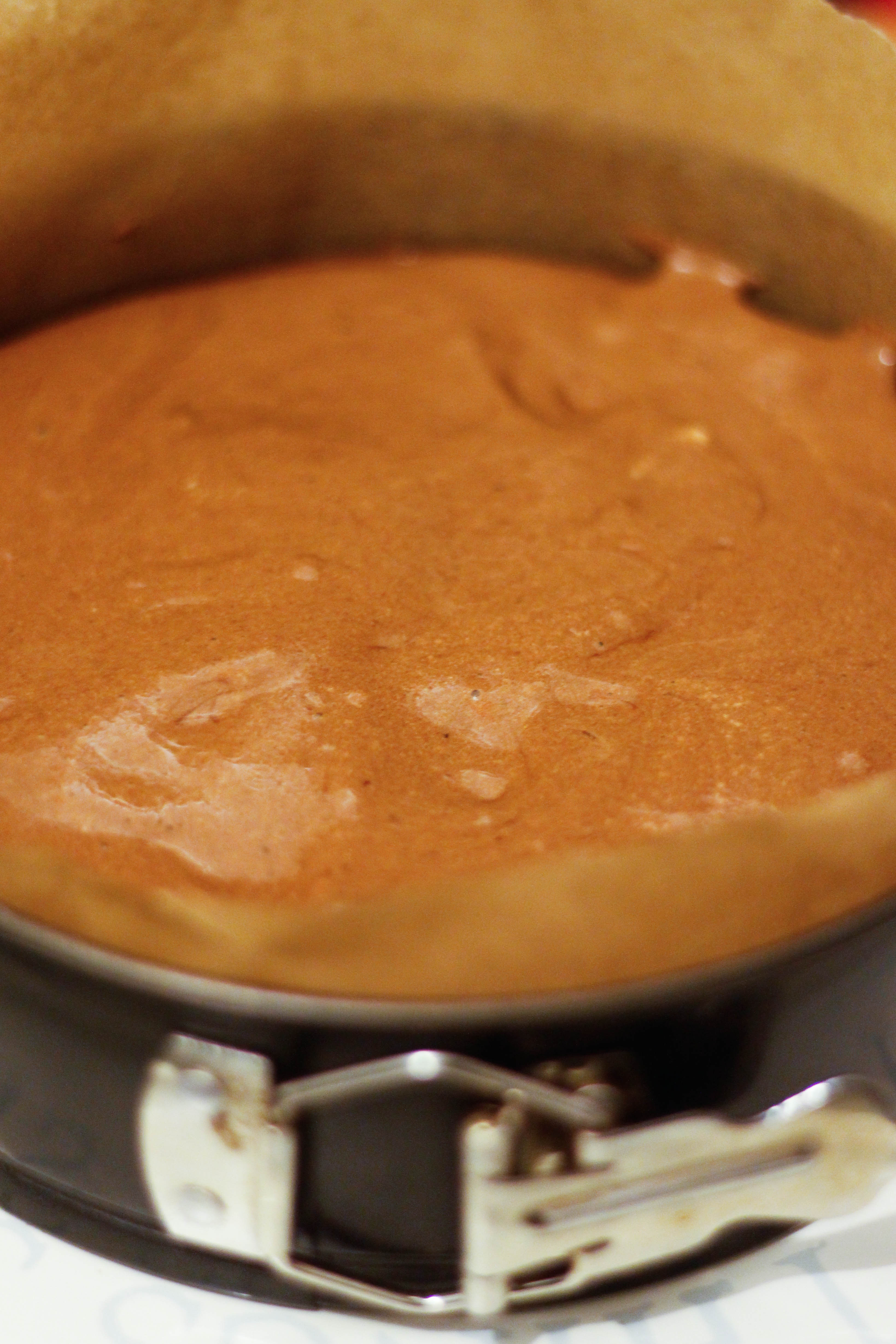 Prepare a second 8″ cake tin by lining the base with baking paper. Pour the remaining mixture directly onto the pan (without a biscuit base) and bake for 50 minutes, or until cake is set but still slightly wobbly in the centre.