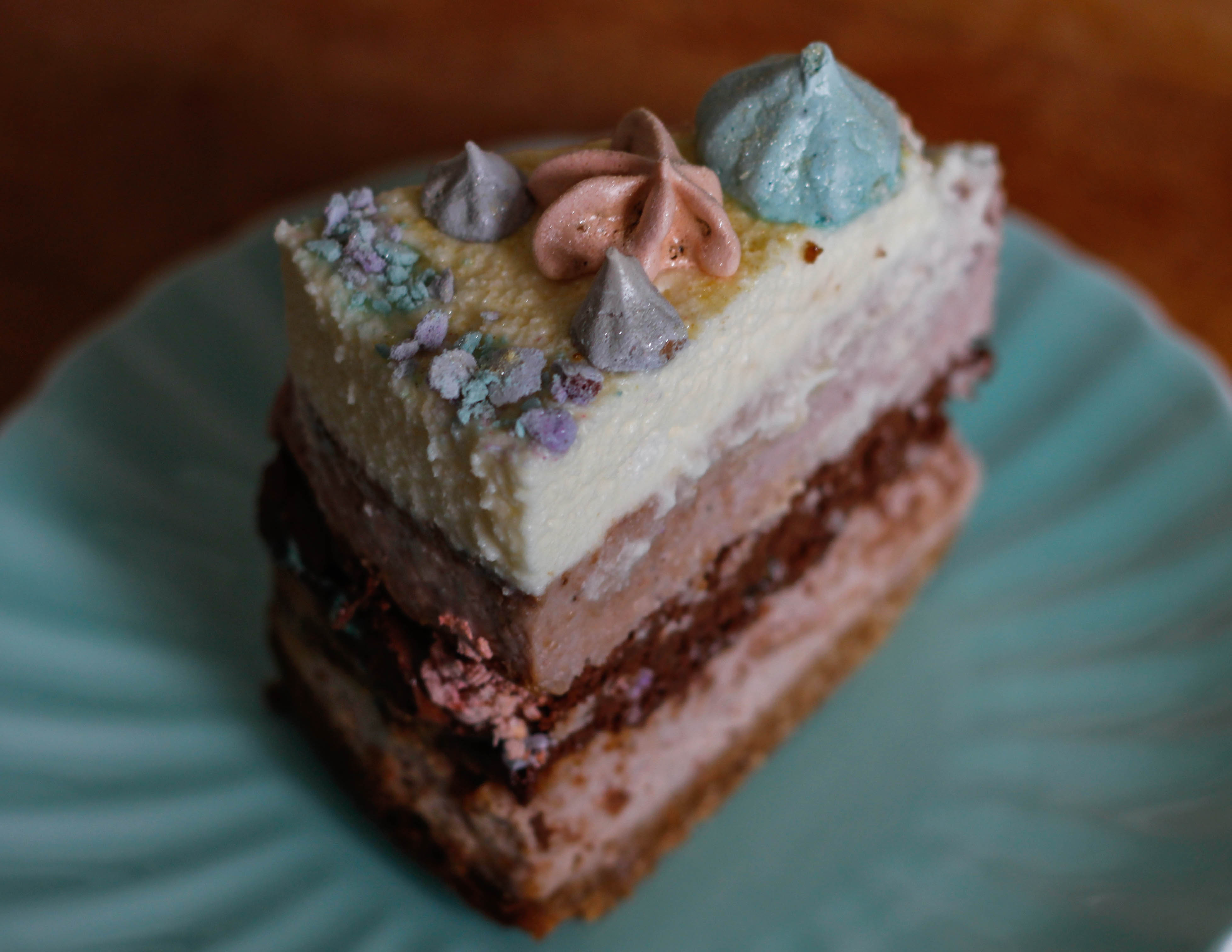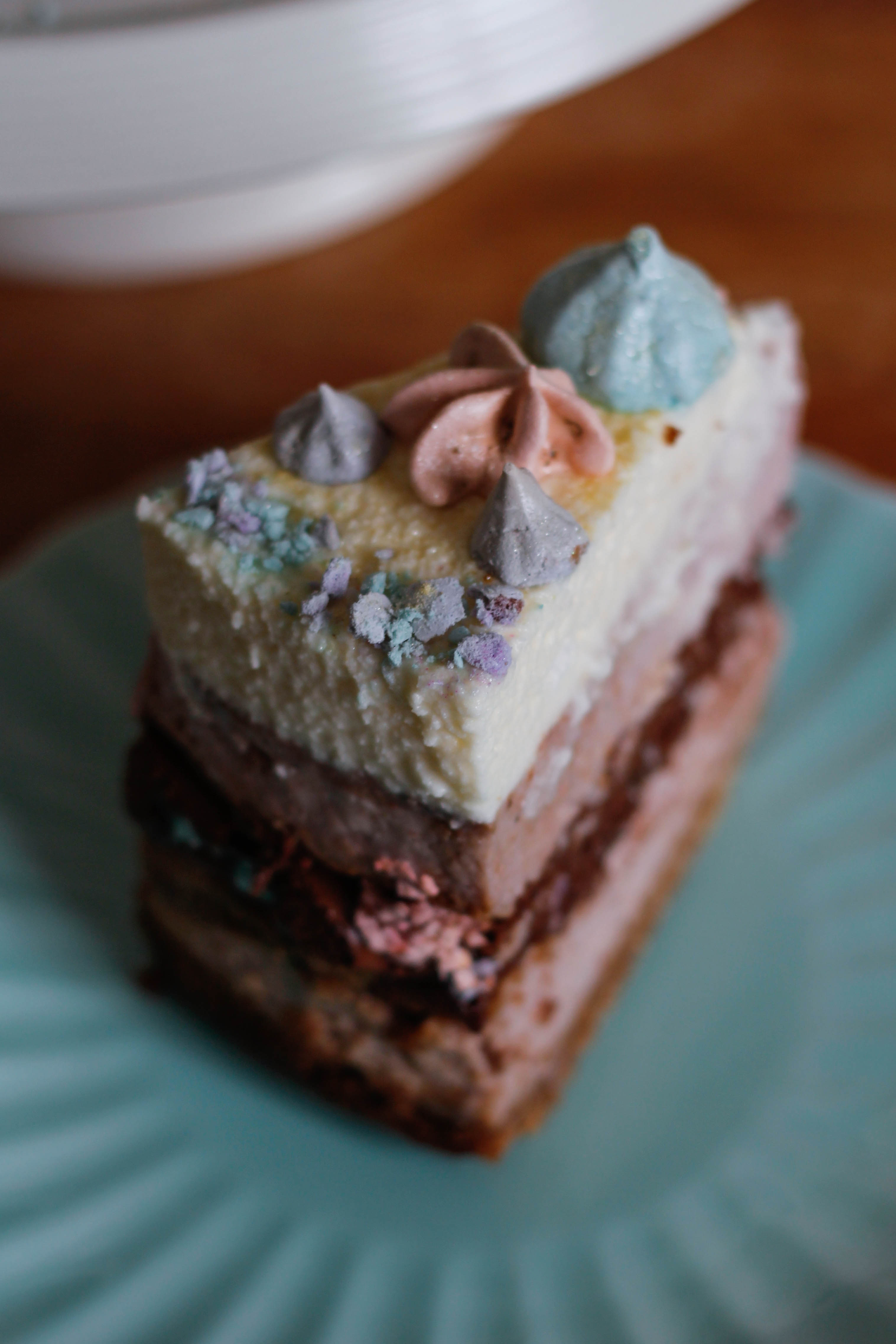 Yield: one 8″ layered cheesecake