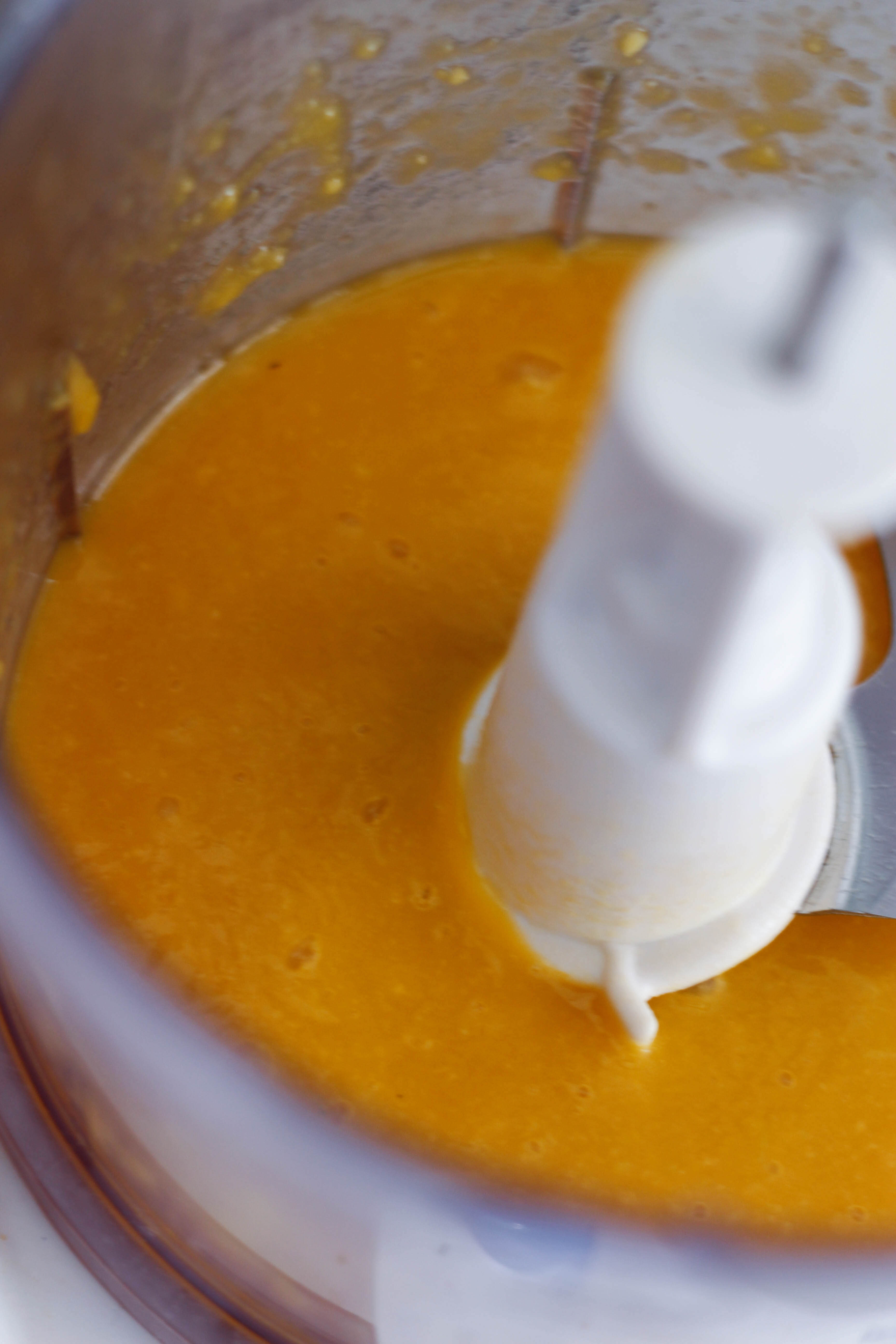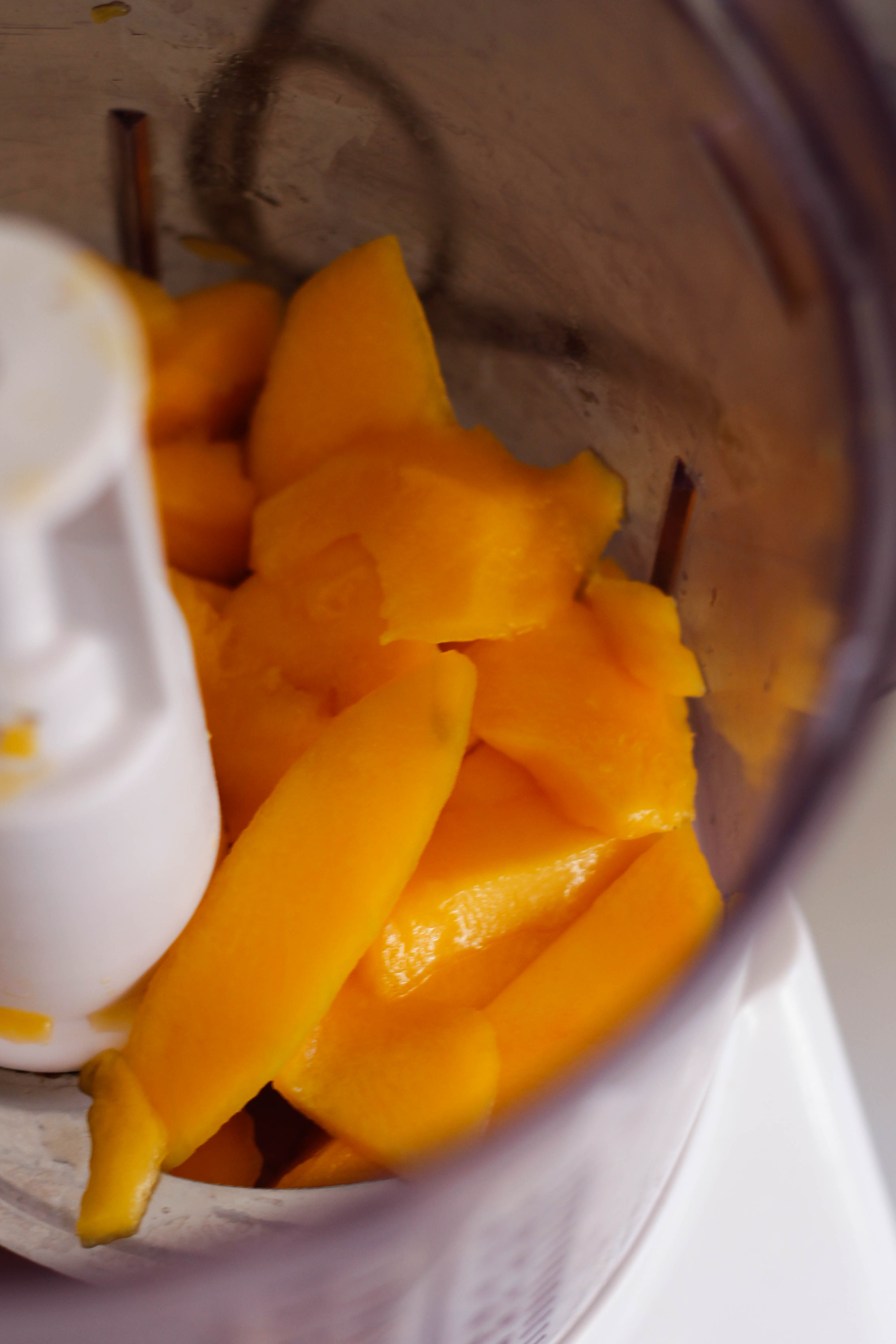 Place the mango in a food processor and pulse until you have a smooth purée, then set aside.