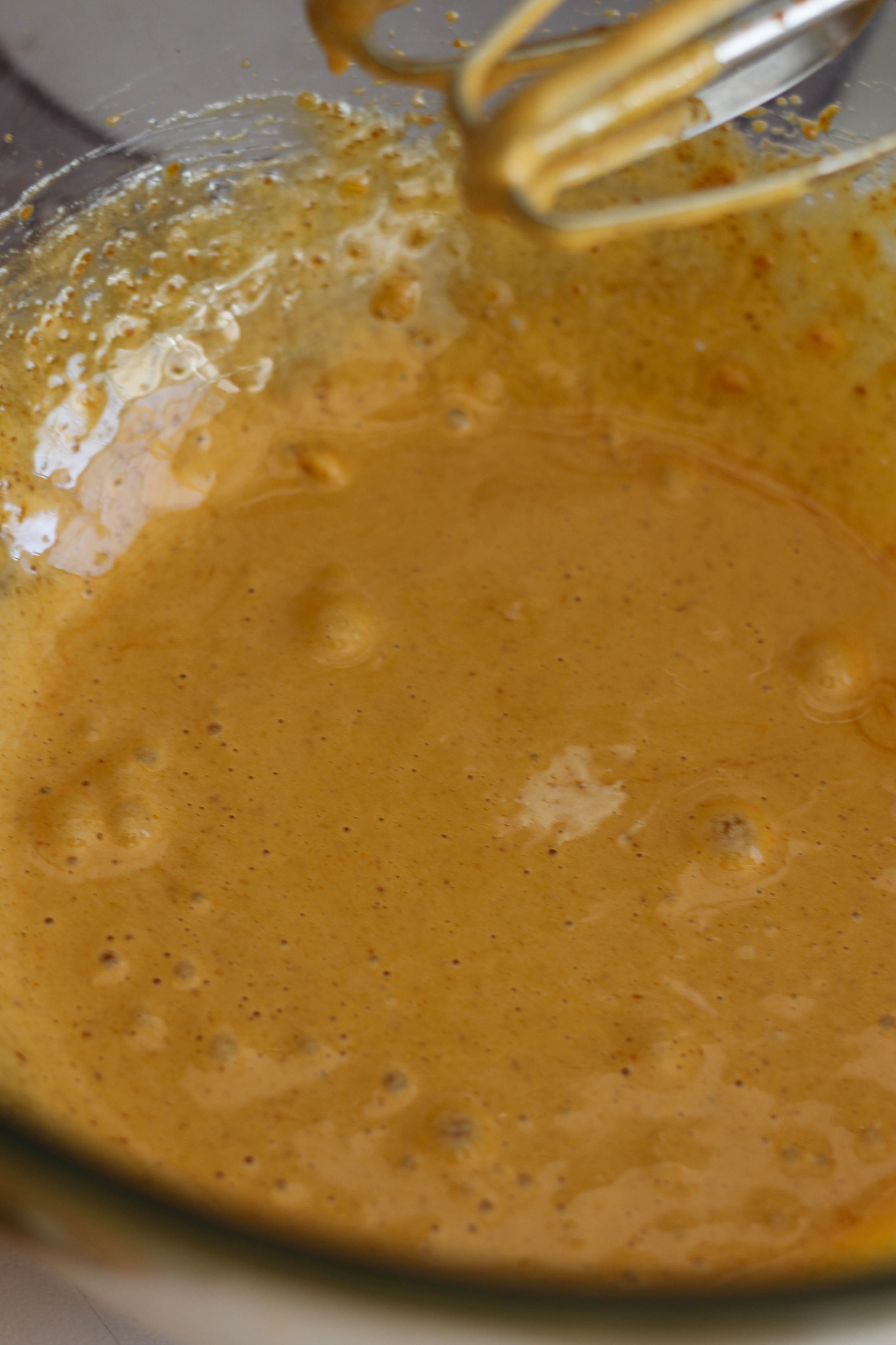 Tip: heat gently so that the eggs don’t curdle. The mixture should thicken to a thin, creamy custard consistency.