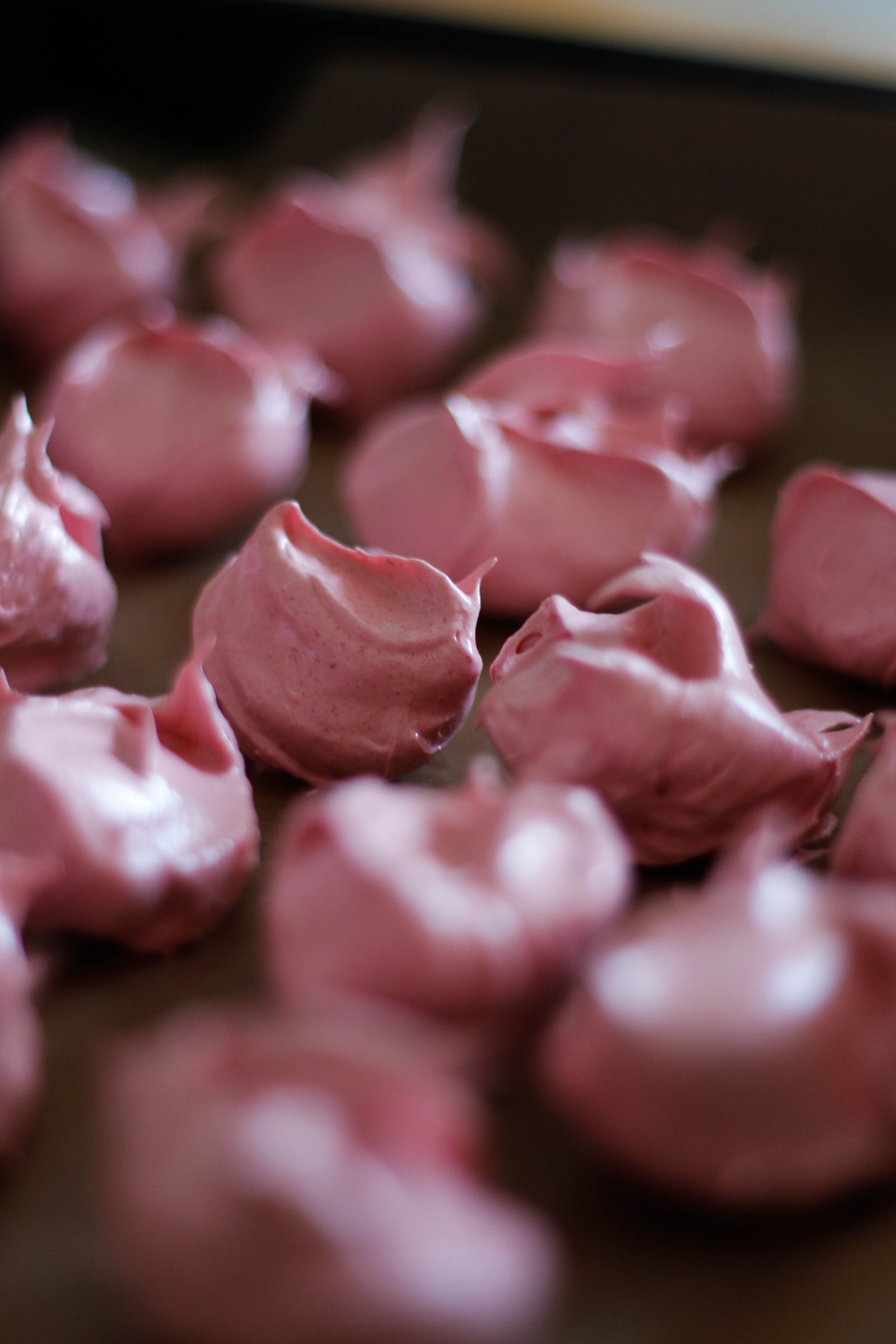 Drop teaspoons of the meringue onto the prepared tray and bake for around 1 hour and 15 minutes, or until crisp.