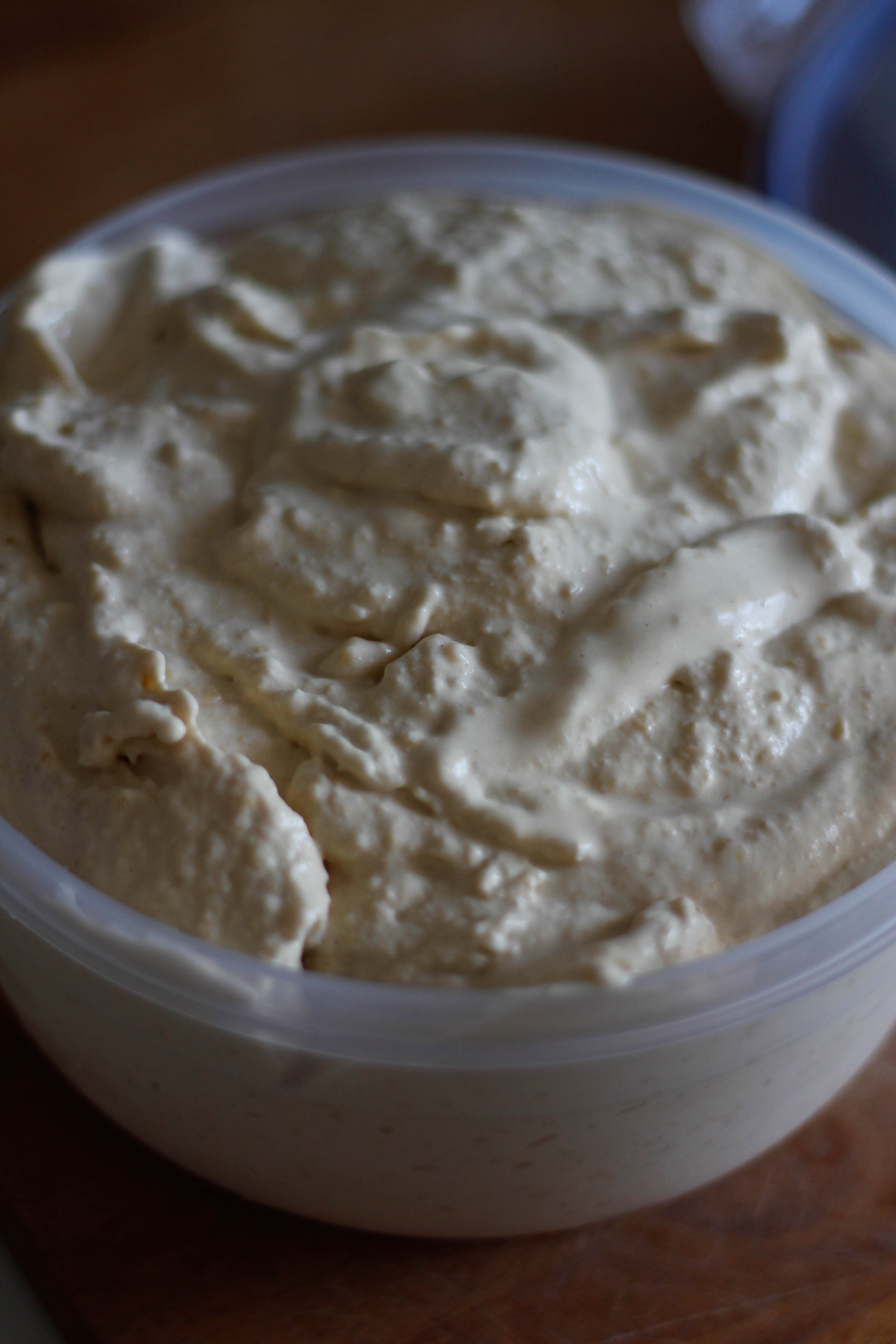 Once cool, place the mixture in the freezer to set, removing it every 30 – 45 minutes and beating with an electric mixer to break up the frozen pieces. When the ice cream is almost frozen pour it into an air tight container, then place it back in the freezer to finish setting.