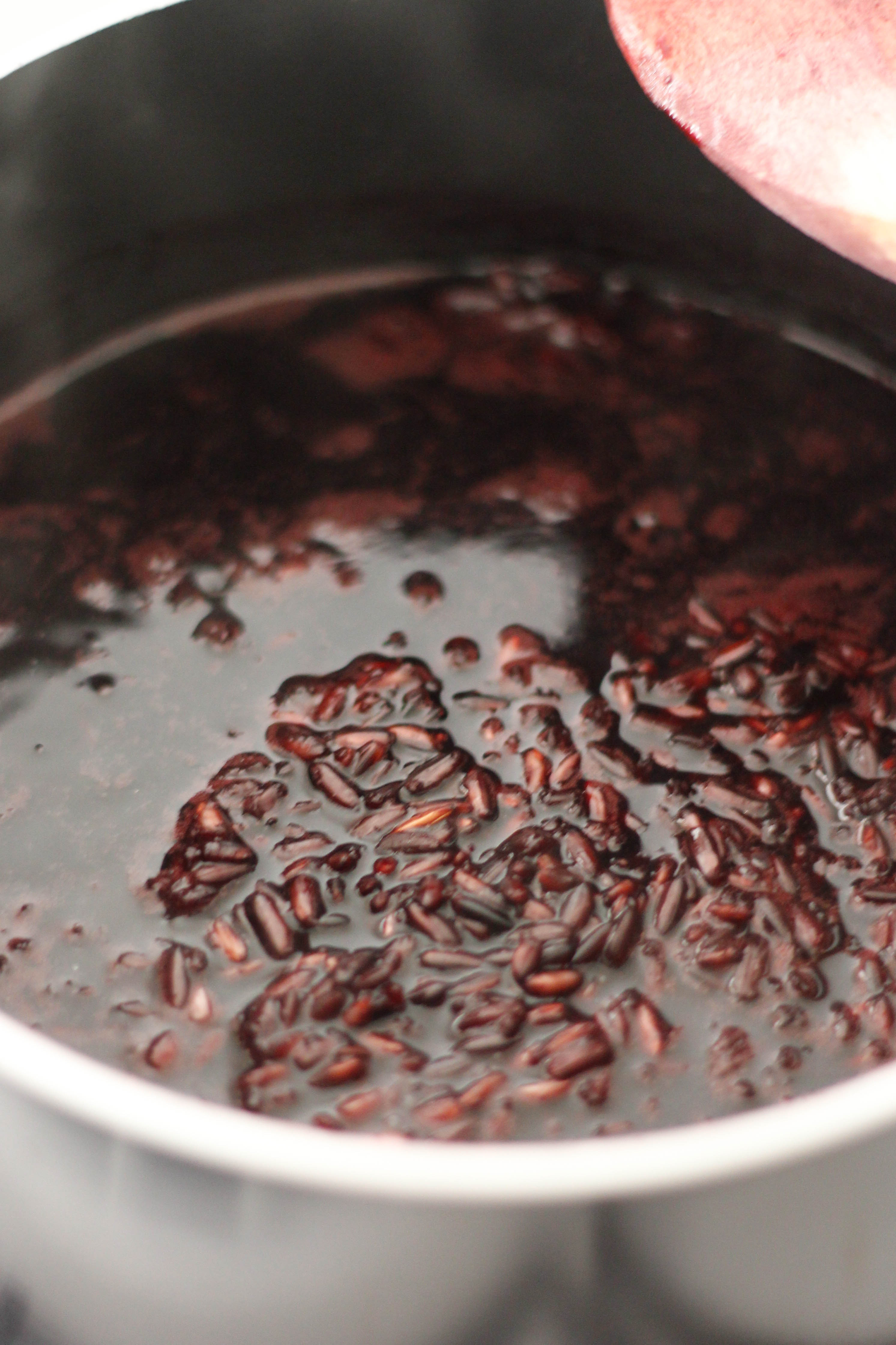 Place the rice and 3 cups water into a saucepan and simmer for 45 minute, adding an extra 1/2 cup if it begins to dry out.