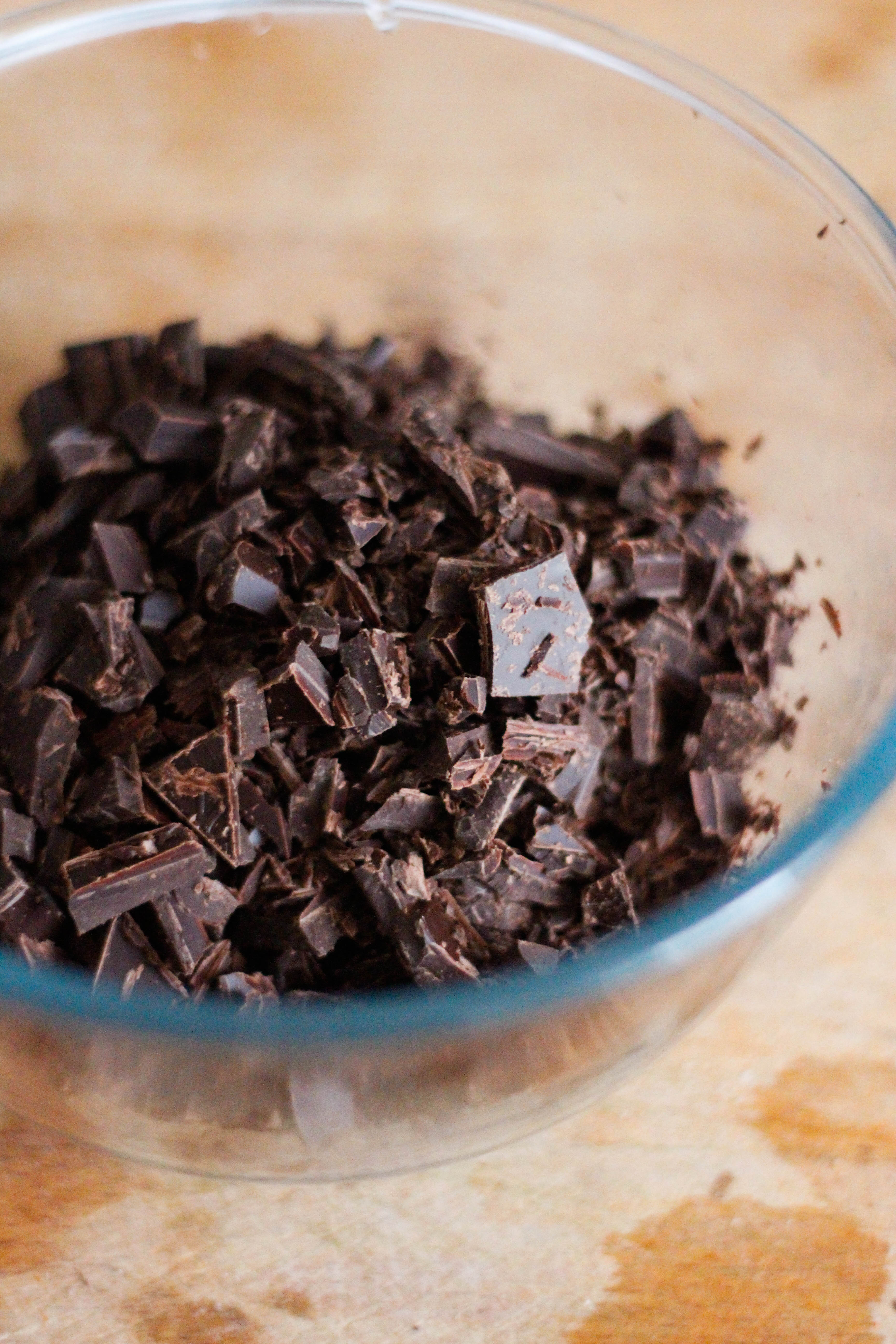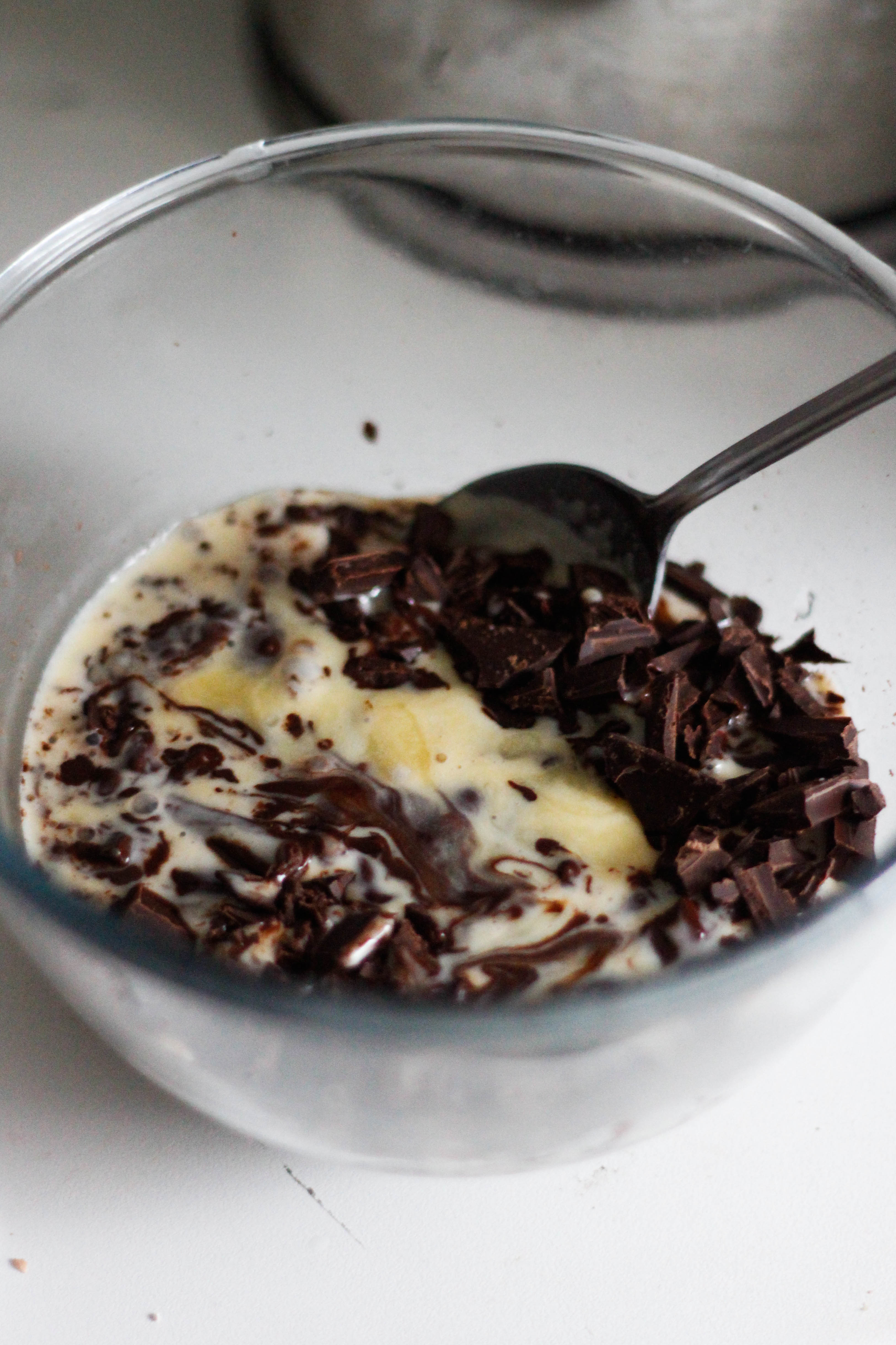 Chop the chocolate, then place it in a bowl and set aside. Gently heat the cream in a saucepan, then pour it over the chocolate and set aside to melt.