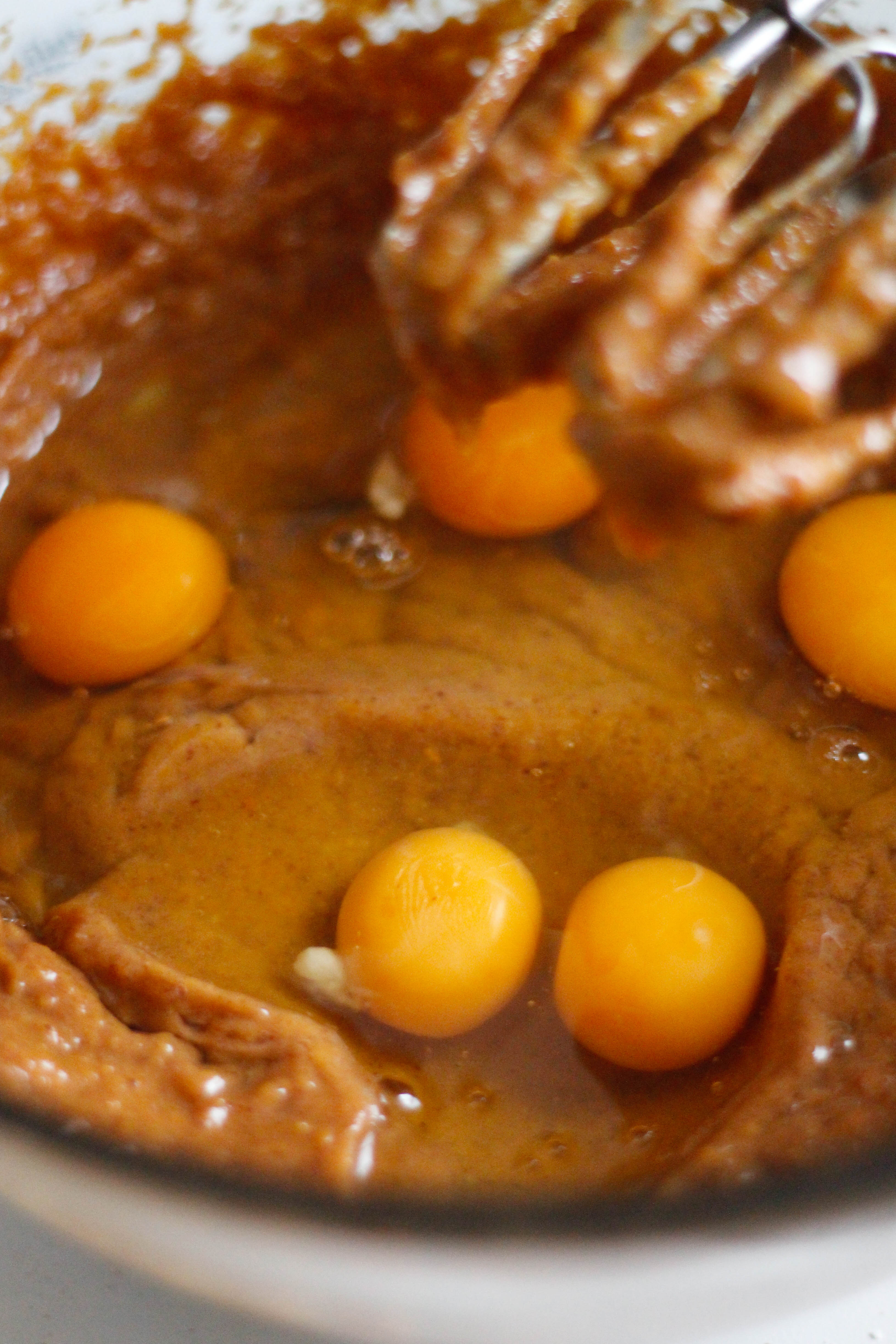 Add the honey and almond butter and beat together until smooth, then beat in the eggs.