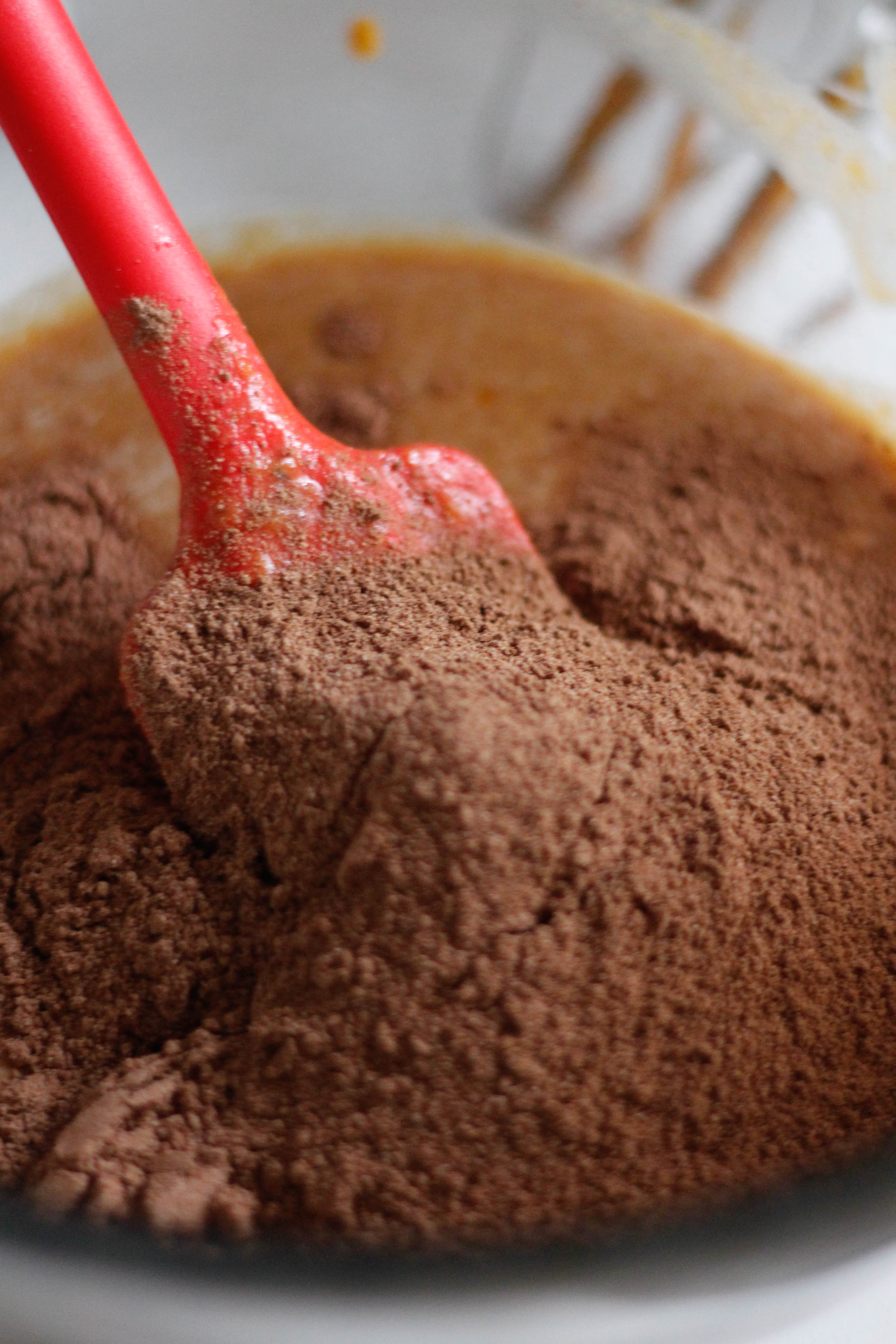 In a separate bowl sift the dry ingredients together, stir to combine, then fold the two mixtures together.
