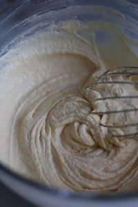 Beat together the butter and icing sugar until creamy, then gradually add in the eggs.
