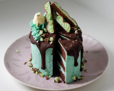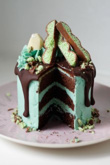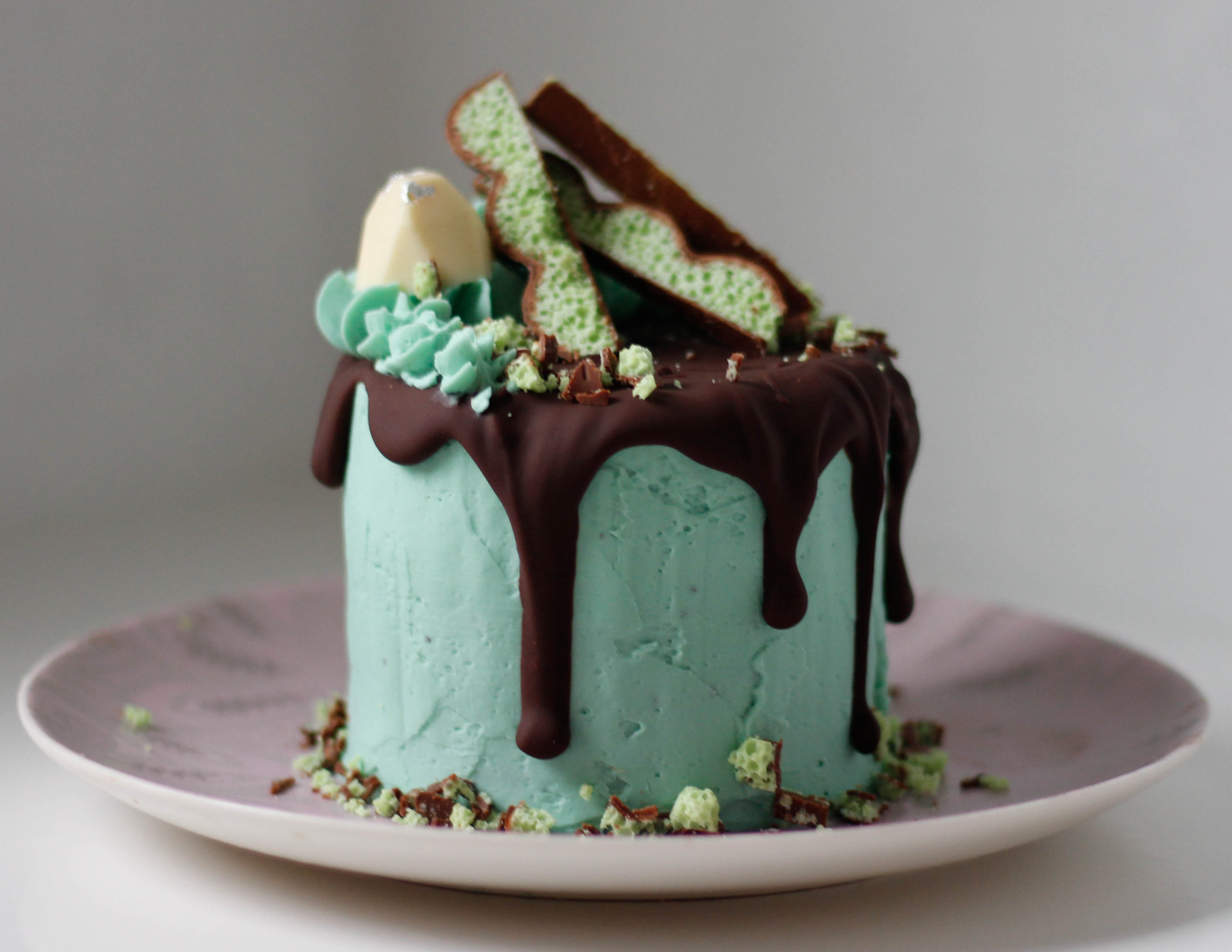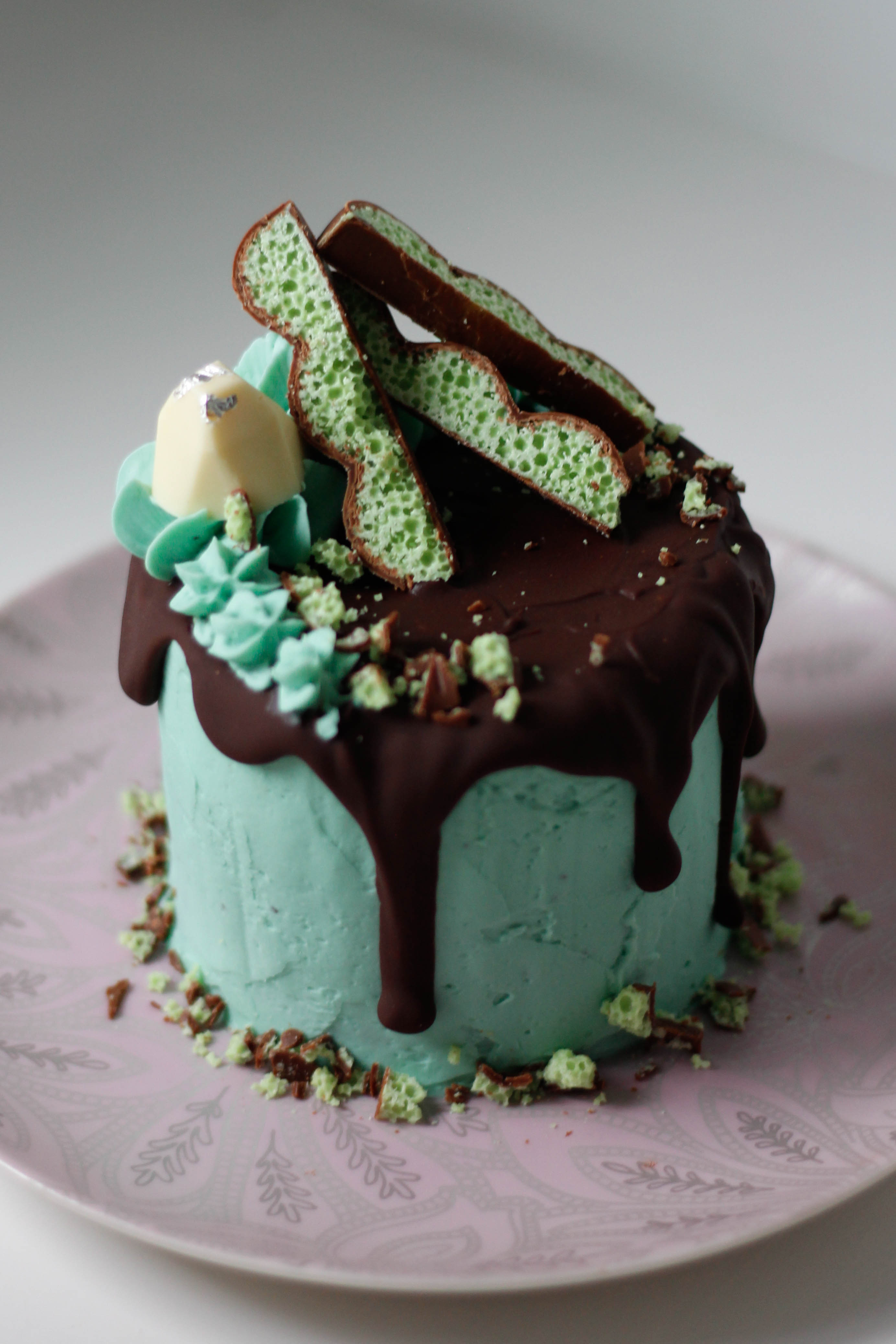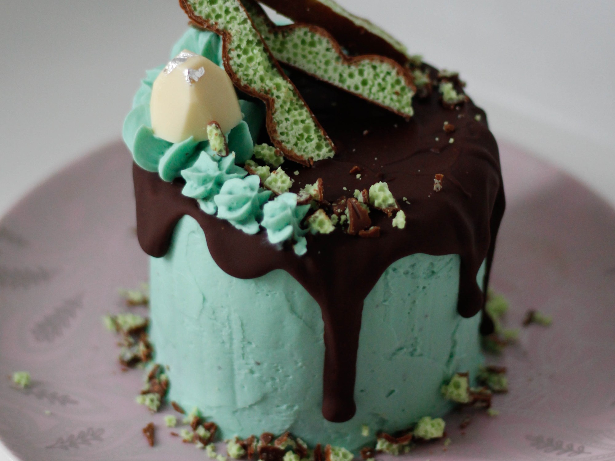 Decorate the cakes as desired – I used sliced and crumbled Aero chocolate bars and some homemade white chocolates.